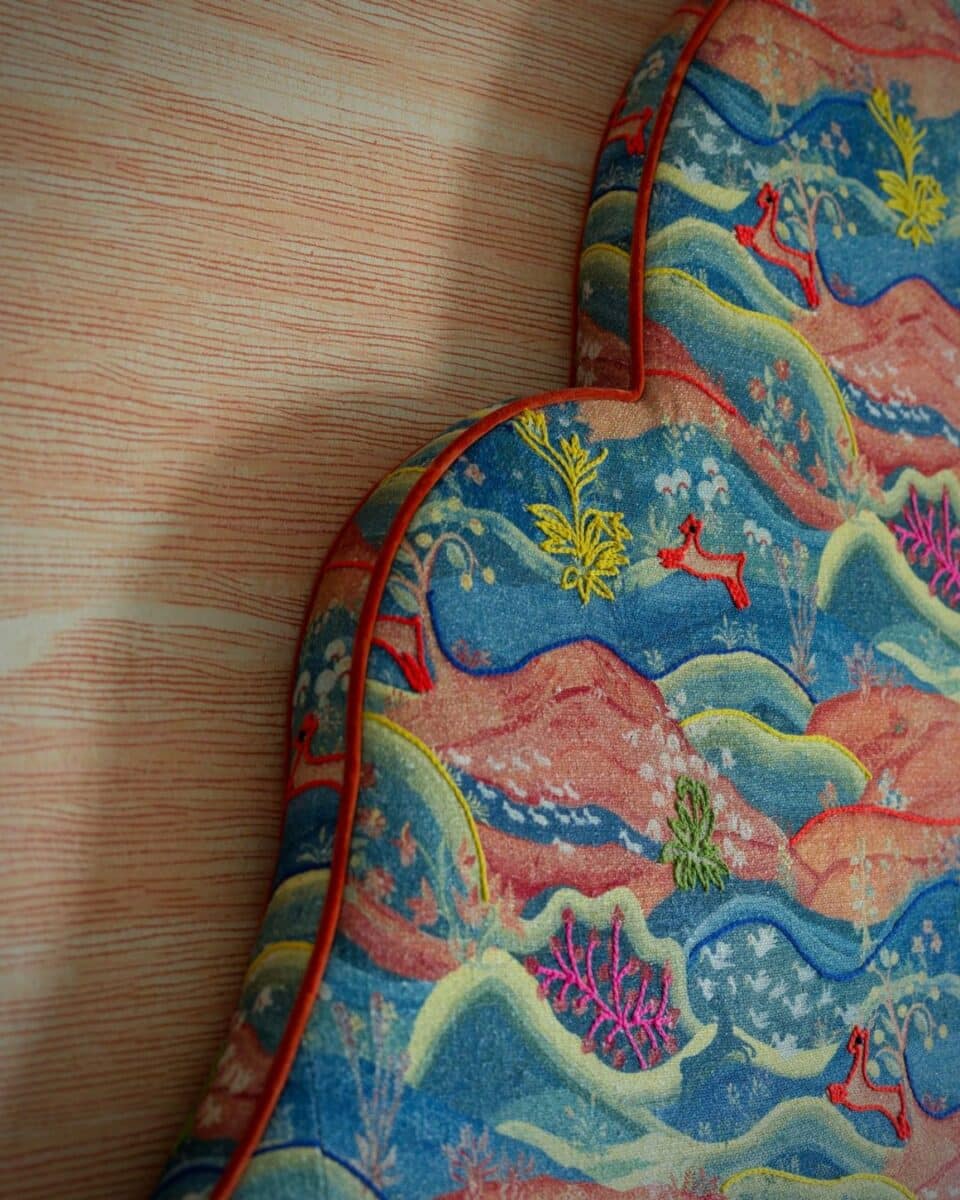 Meadow Multi, one of our new fabrics designed for Andrew Martin, captures the spirit of the outdoors through a relaxed, flowing design of rolling hills, tiny trees, and playful animals. The pattern brings a sense of escapism and folklore, inviting the imagination into the open air.