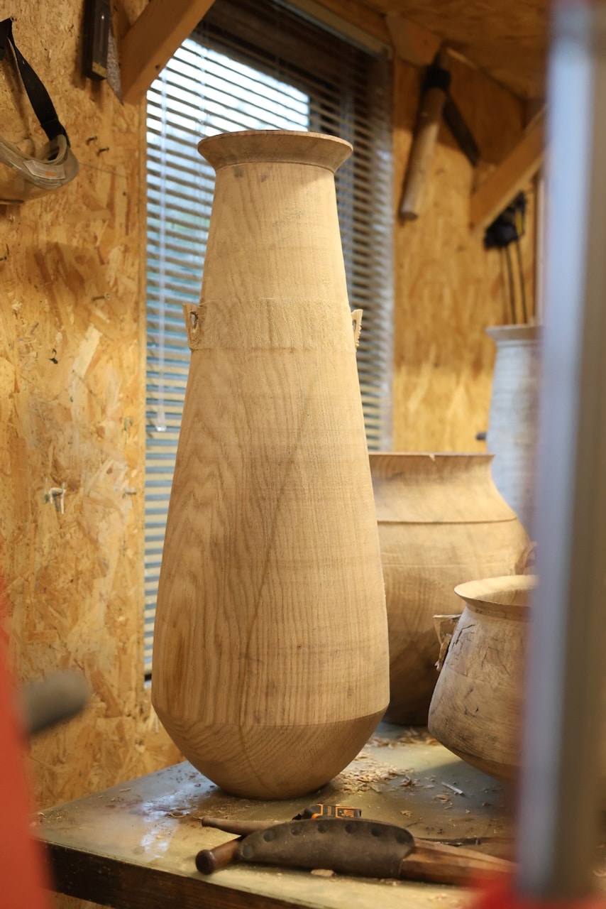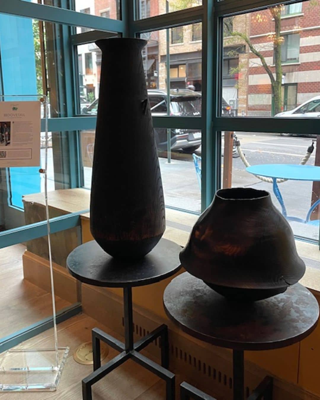 In the Lobby at Warren Street Hotel, we are exhibiting two exquisite sculptural wooden vessels by Ash & Plumb. Their work is deeply rooted in the natural world, defined by its versatility, organic forms and emotional resonance. Each piece is handmade from unseasoned oak, allowing the material itself to shape and influence the final form.