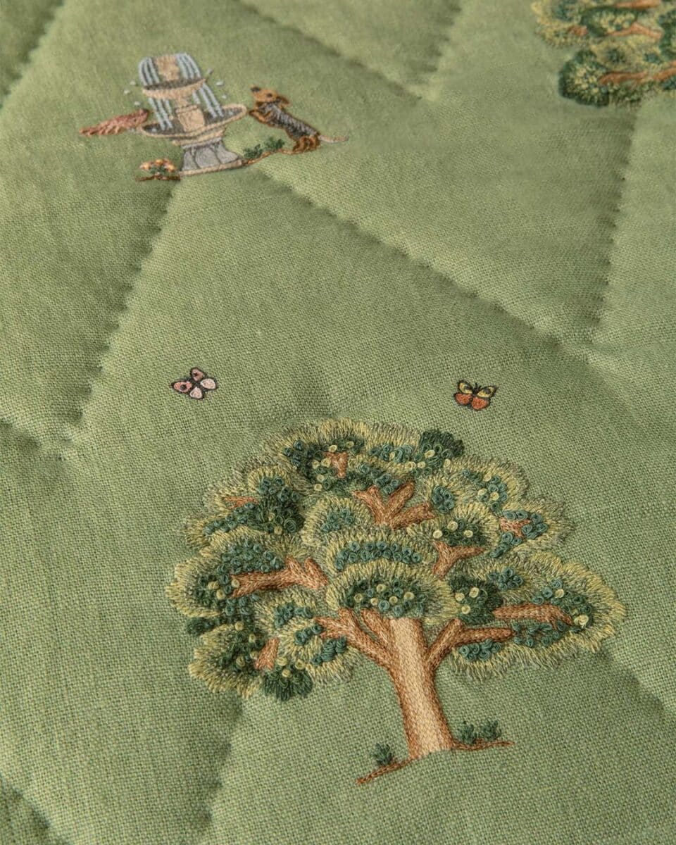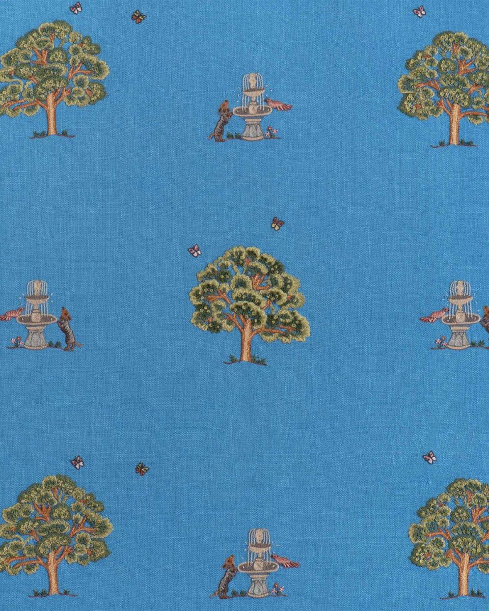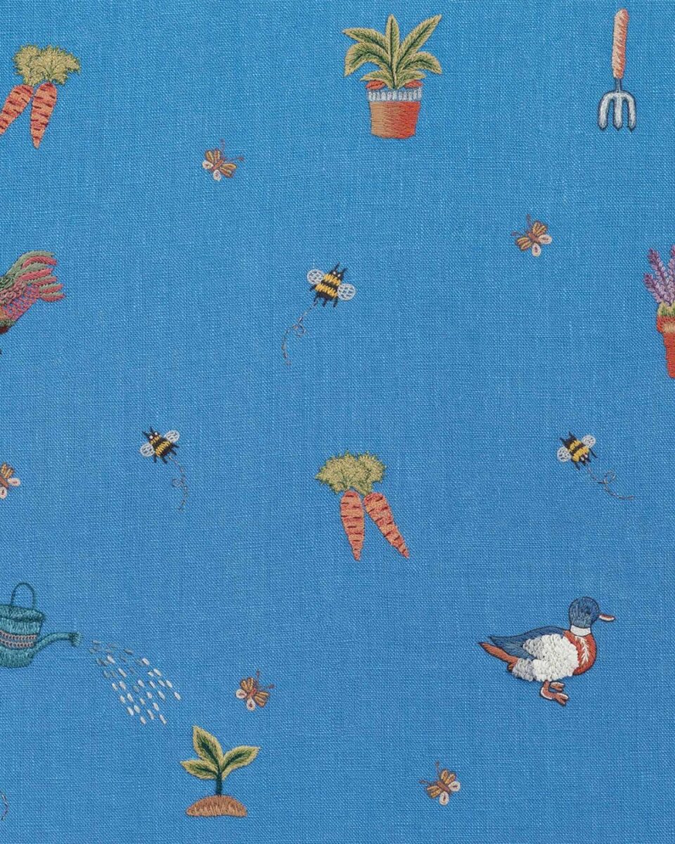 A lively linen embroidered with bustling bees and their honey-laden hives. Each delicate stitch celebrates the vibrant life of nature’s hardest workers, their rhythm and energy woven into every thread. This fabric hums with character, craftsmanship and charm.