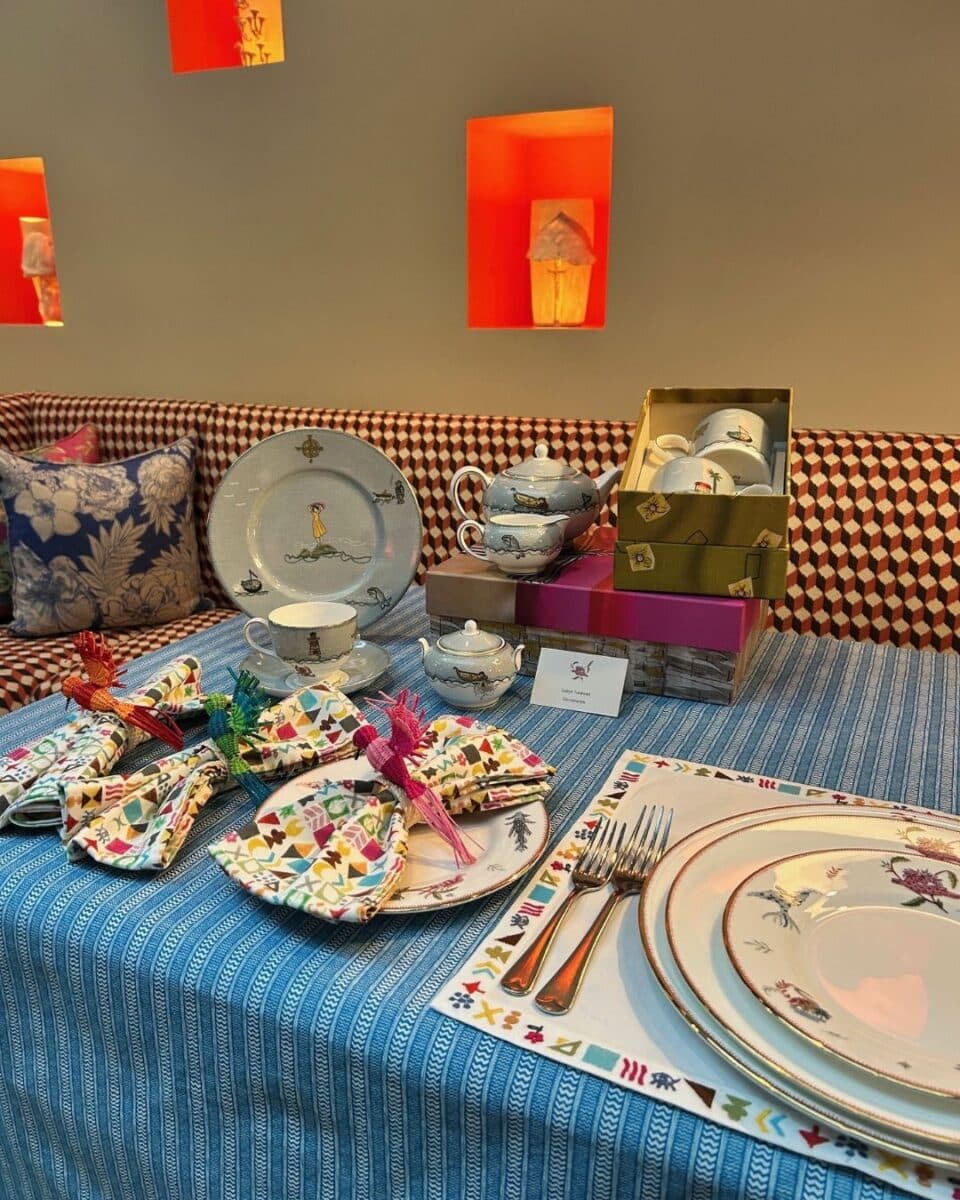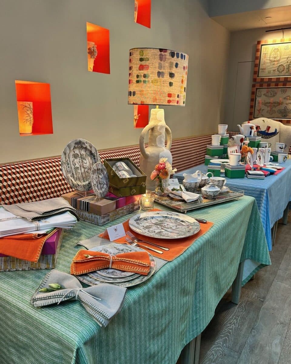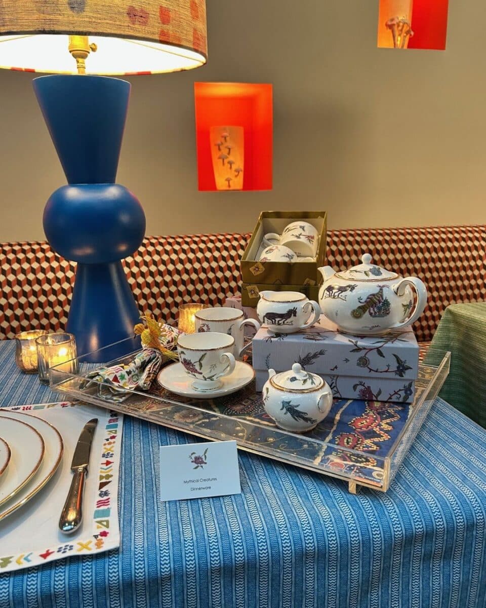 On Thursday 23rd October, we hosted a delightful English afternoon tea in The Orangery at Warren Street Hotel, to celebrate our latest Shop Kit Kemp collections. Bathed in soft autumn light, The Orangery was transformed into a cosy haven filled with colour, conversation and creativity, the perfect setting for a joyful gathering. Guests enjoyed a first look at our newest collection, featuring intricately hand-stitched cushions, appliqué details, vibrant throws, playful china and decorative pieces. Each piece celebrates craftsmanship and individuality, inviting you to bring a touch of the studio’s joyful design into your home.