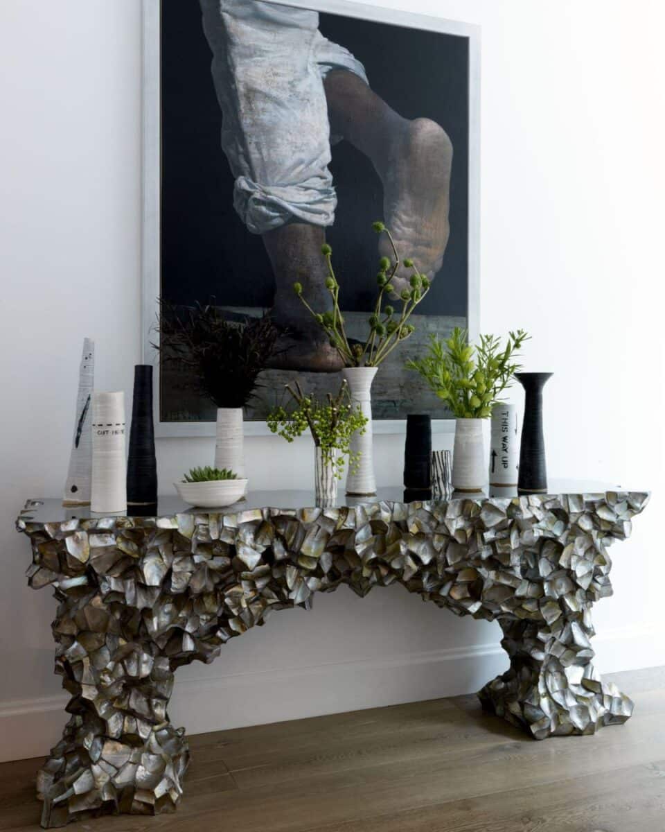 Some consoles behave almost like modern art. They are the showstoppers with unexpected shapes and confident presence. A sculptural console never wants to be hidden, so let its form take centre stage. It is there to delight the eye, bring a sense of theatre and spark conversation the moment you enter the room.