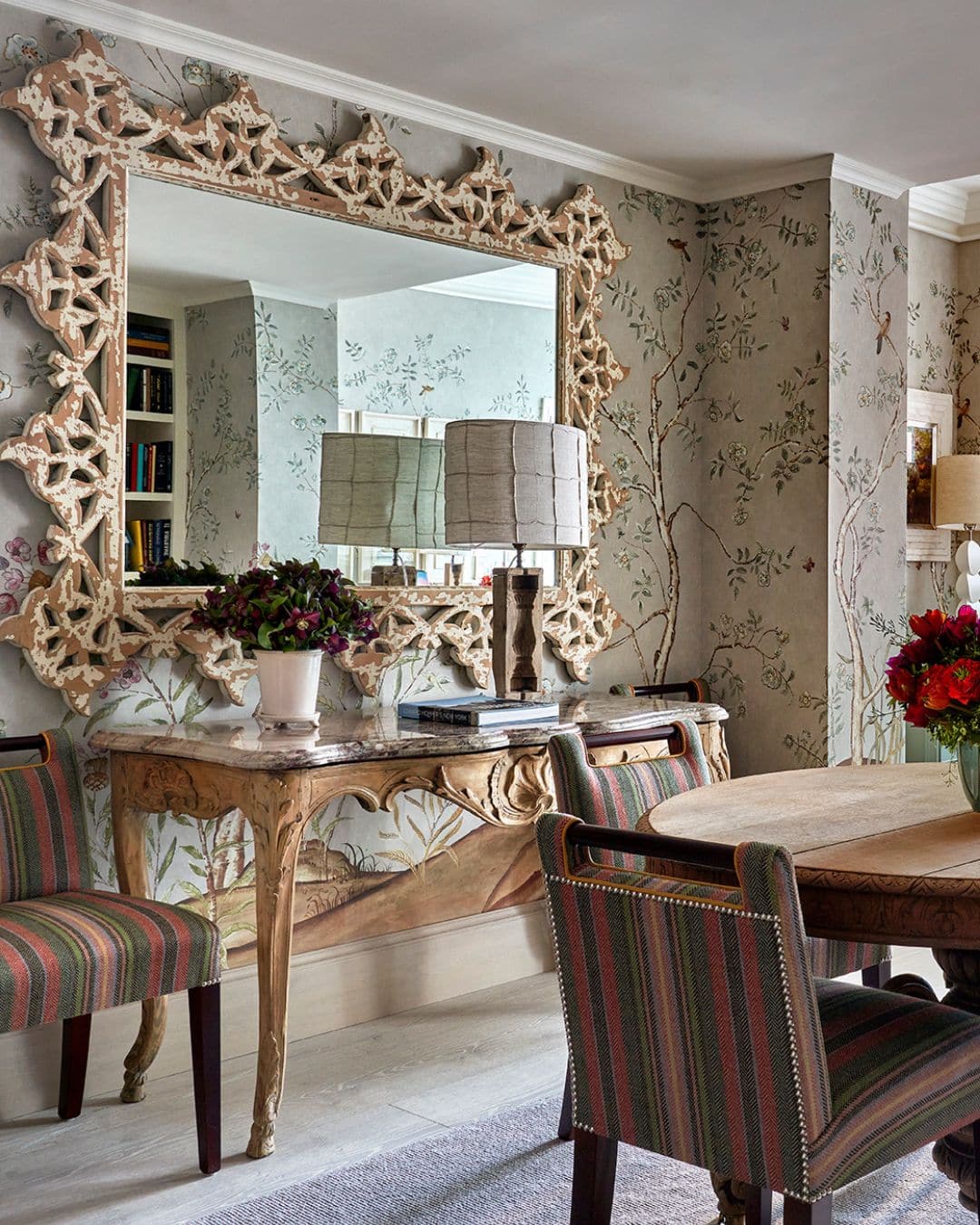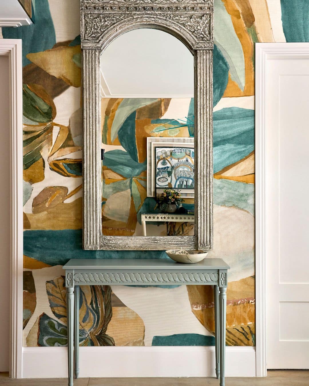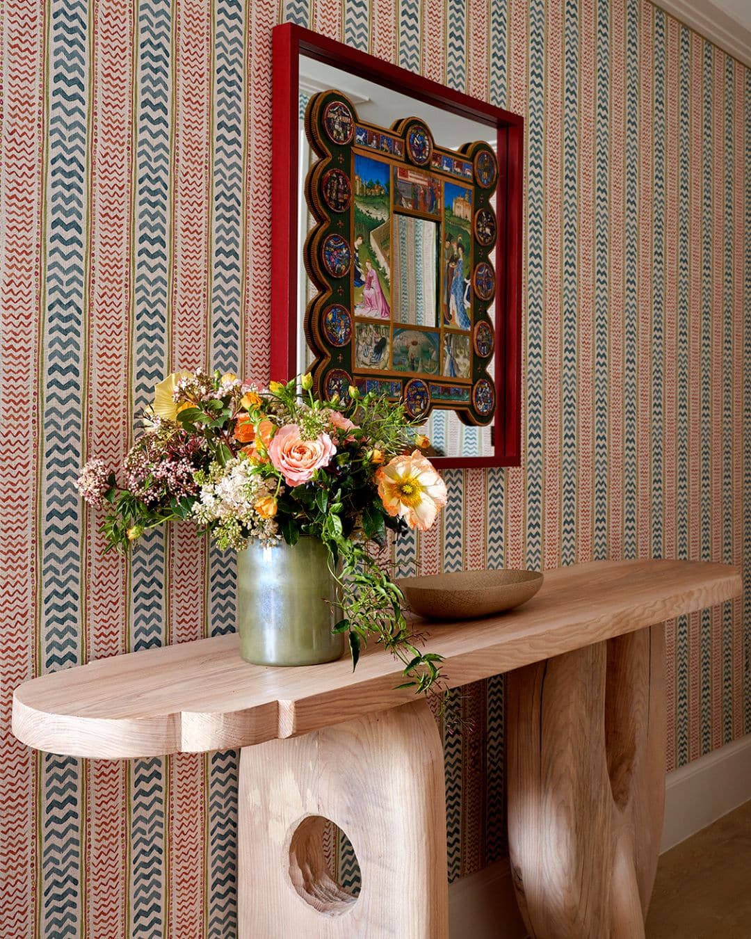 A console paired with a mirror is pure theatre. The mirror draws in light, doubles your arrangement and adds a sense of sparkle. This pairing works beautifully in any space that needs uplifting. Choose a mirror with real personality, perhaps a bold frame or an antique piece that complements the console. Add a lamp, a vase or a small artwork, and let the whole ensemble glow.