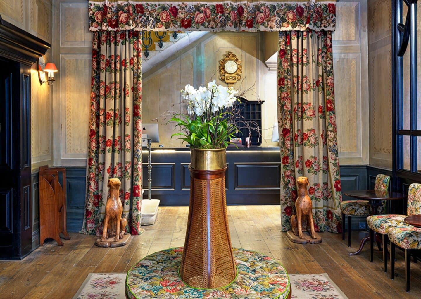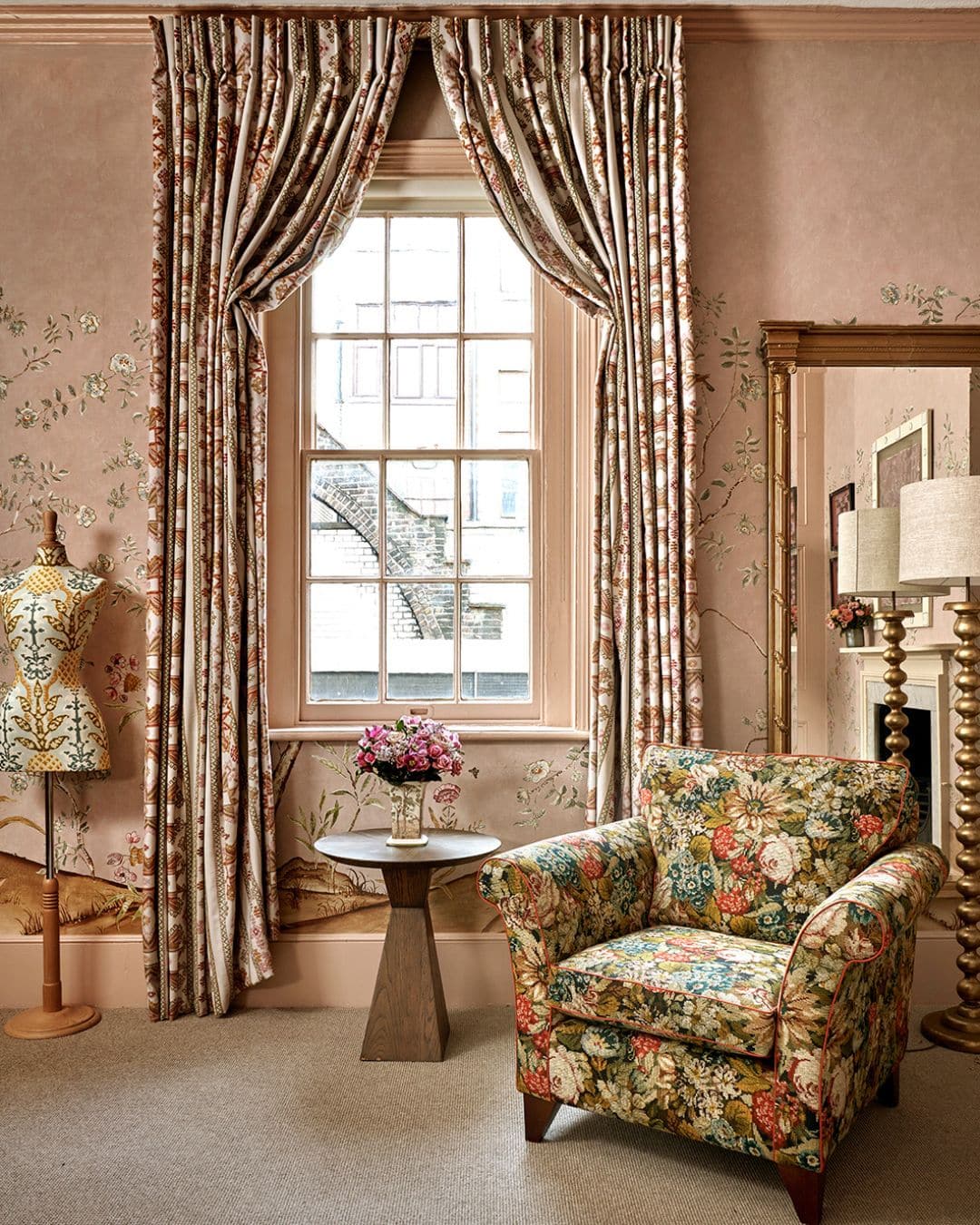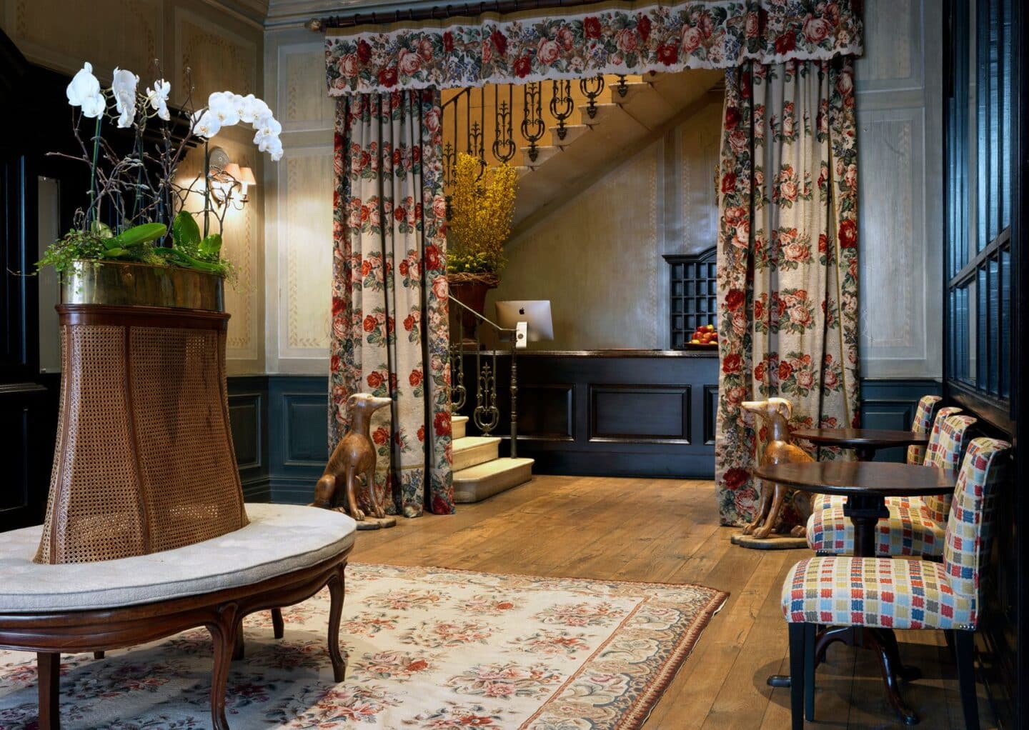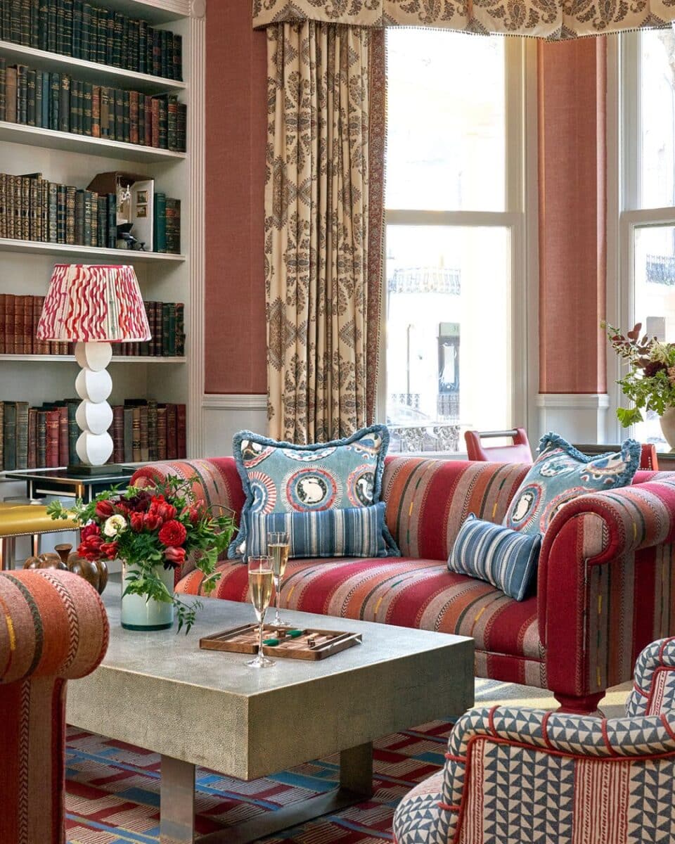 This festive season, consider draping your spaces to bring layered comfort and to soften your windows, or even larger openings. In the lobby at Covent Garden Hotel, for example, we have used sumptuous needlepoint fabric for curtains at the entrance, creating an inviting and luxurious welcome that feels both festive and effortlessly warm.