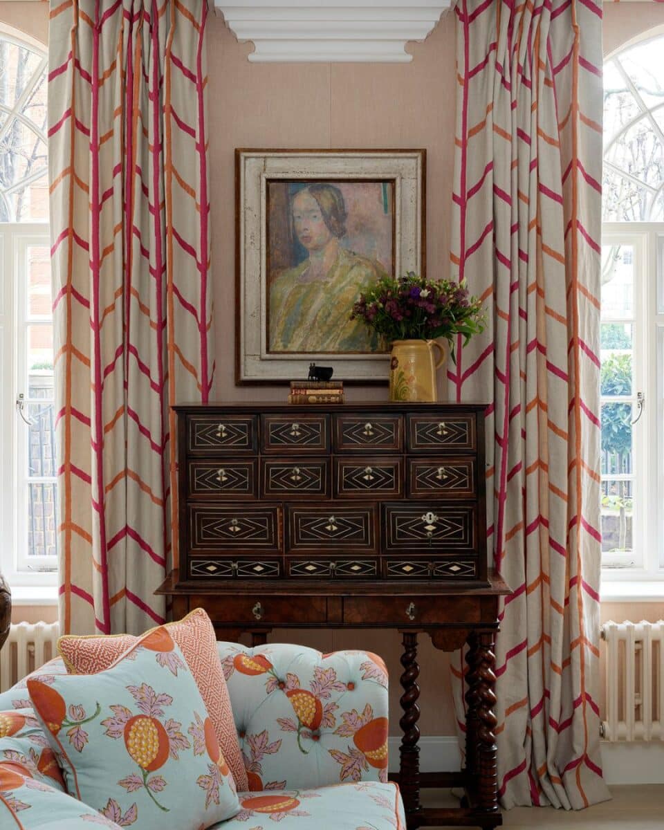 We love using colour blocked blinds for an unexpected sense of arrival and delight, proof that beauty and balance do not always rely on symmetry. They also offer that much needed touch of sunshine we all crave during the colder months.