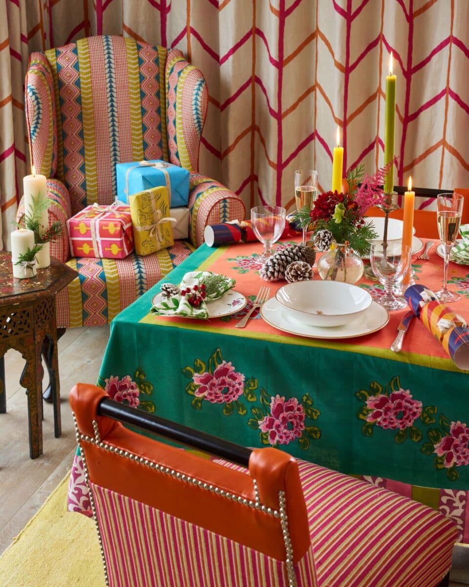 Think of your table as you would a beautifully dressed bed. It’s all about layers and textures. Start with a base cloth or runner in a soft neutral, then build upwards. Mix vintage finds with modern ceramics, a floral plate against a contemporary charger feels wonderfully fresh. Then add napkins that have a bit of character: block prints, stripes, or even a bold pop of coral or olive green to offset the autumn tones.
