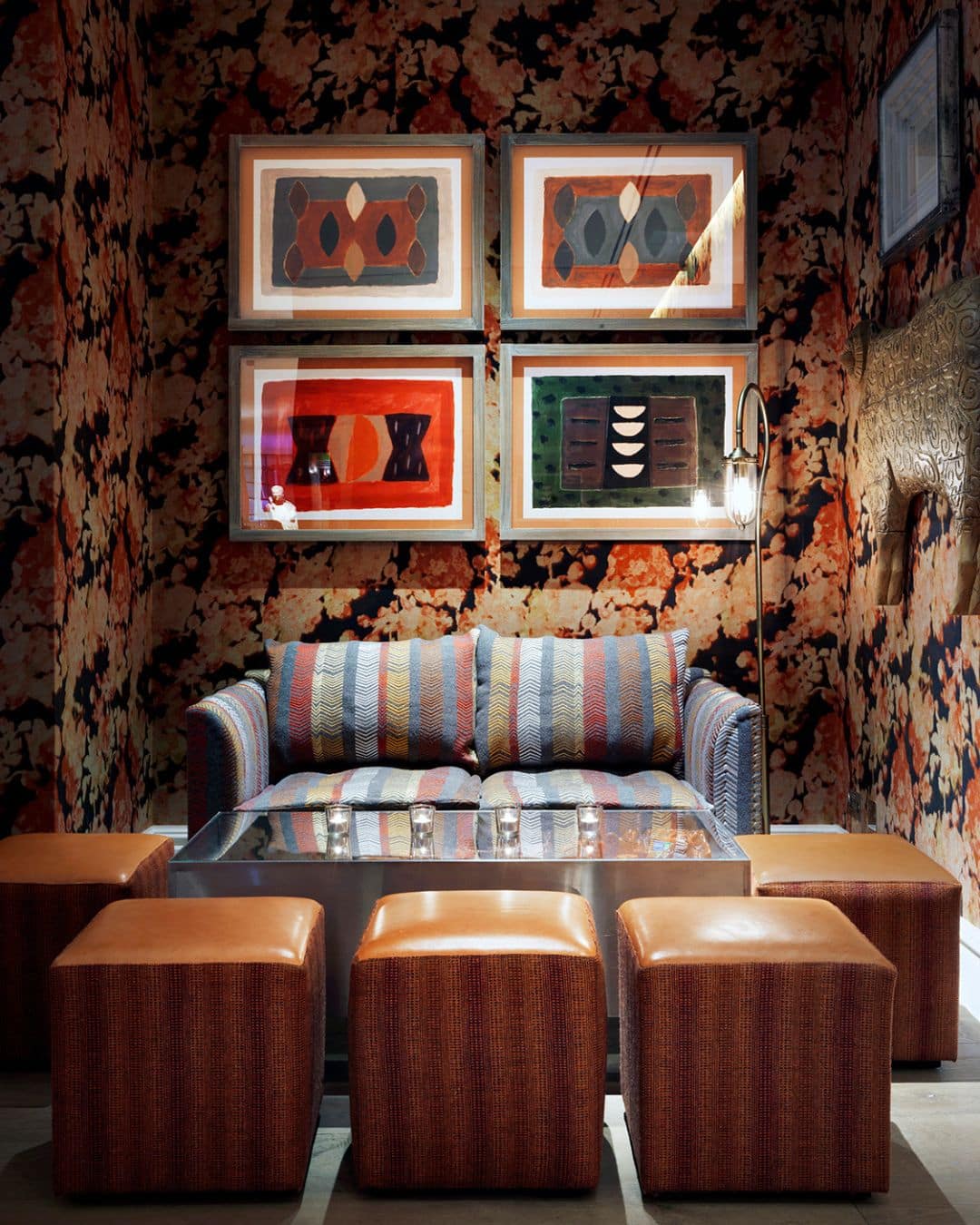 At The Soho Hotel, a larger niche has become home to a plush striped sofa and stool seating, transforming the space into a lively little enclave. It is amazing how a well-placed seat can change the energy of a room. Suddenly, a group of friends reuniting have their own comfortable corner in which to talk, laugh and reminisce.