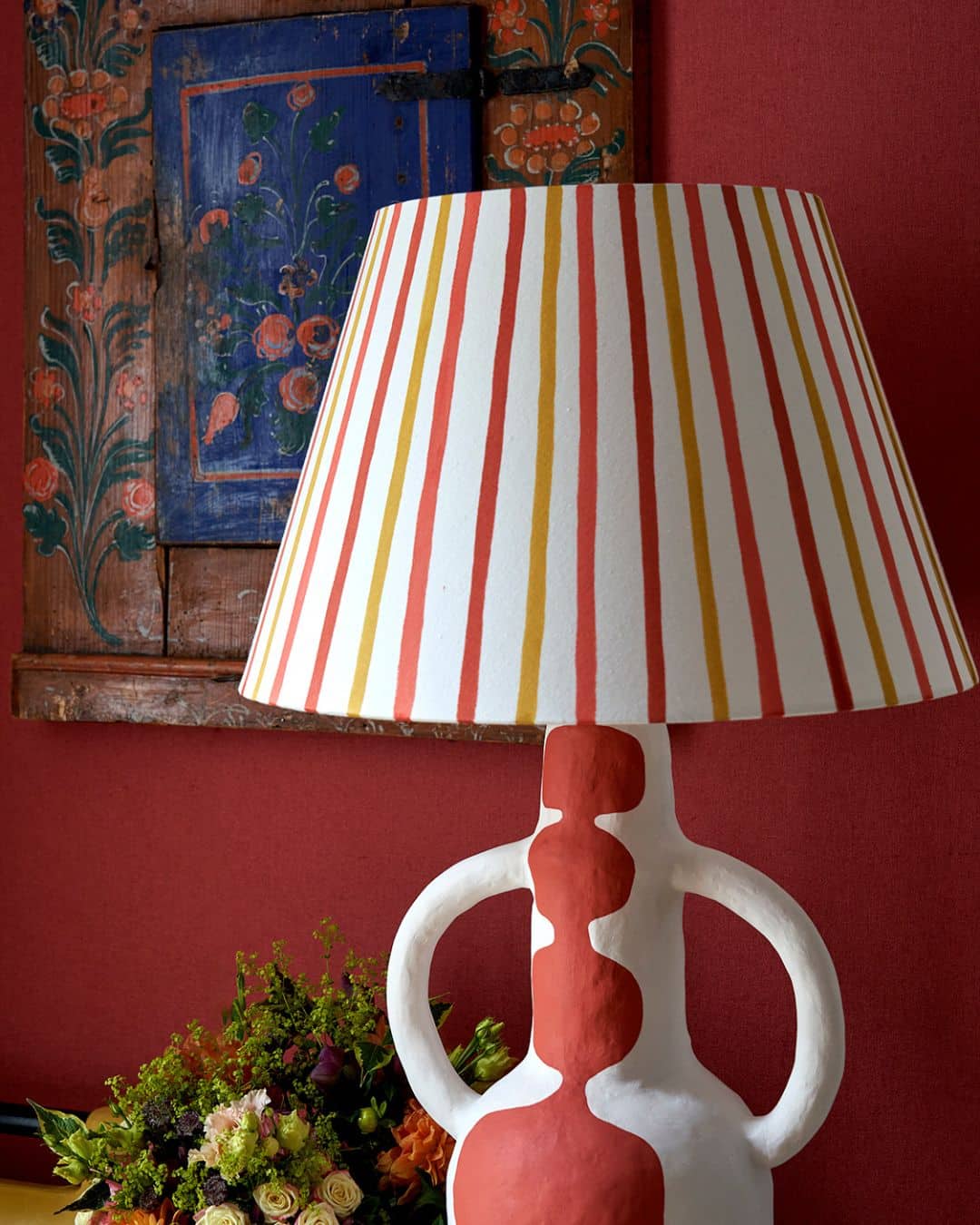 Every corner of the suite offers an opportunity to introduce distinctive and inviting touches. A bespoke painted lamp with a striped shade is a small but thoughtful detail that reinforces this sense of care and artistry.