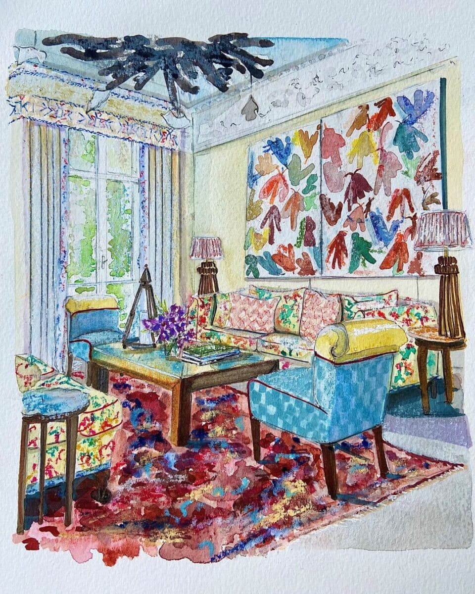 Her two books, Interior Portraits and Painted Travels, are treasures for anyone who loves the creative world of interiors. Featuring the favourite rooms of 89 leading creatives, from interior designers to ceramicists and antiques dealers, each painting is accompanied by an interview that reveals the stories behind the spaces.