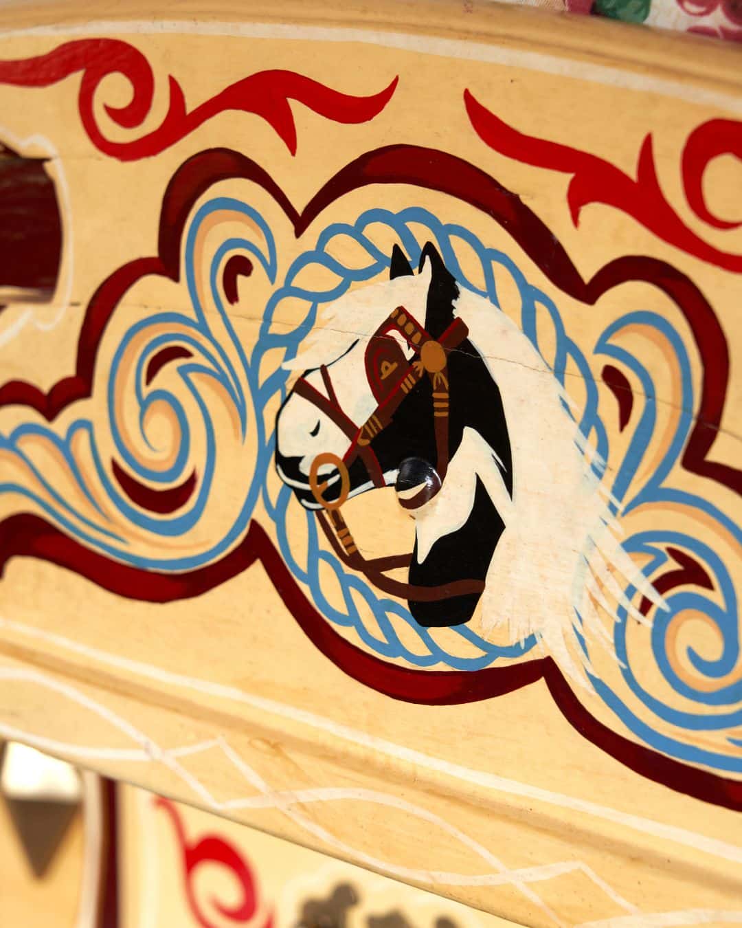 This spirit of the horse also lives in our much loved vintage caravan, where hand painted horses dance across the panels in bright, joyful tones, creating a playful reminder of travel, freedom and adventure.