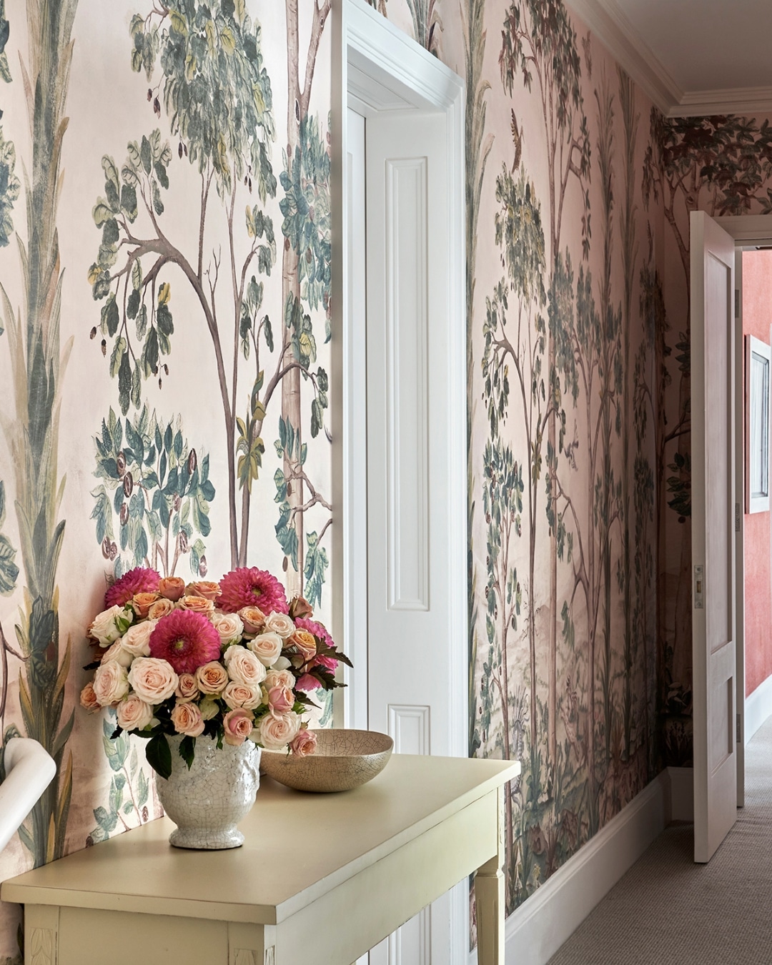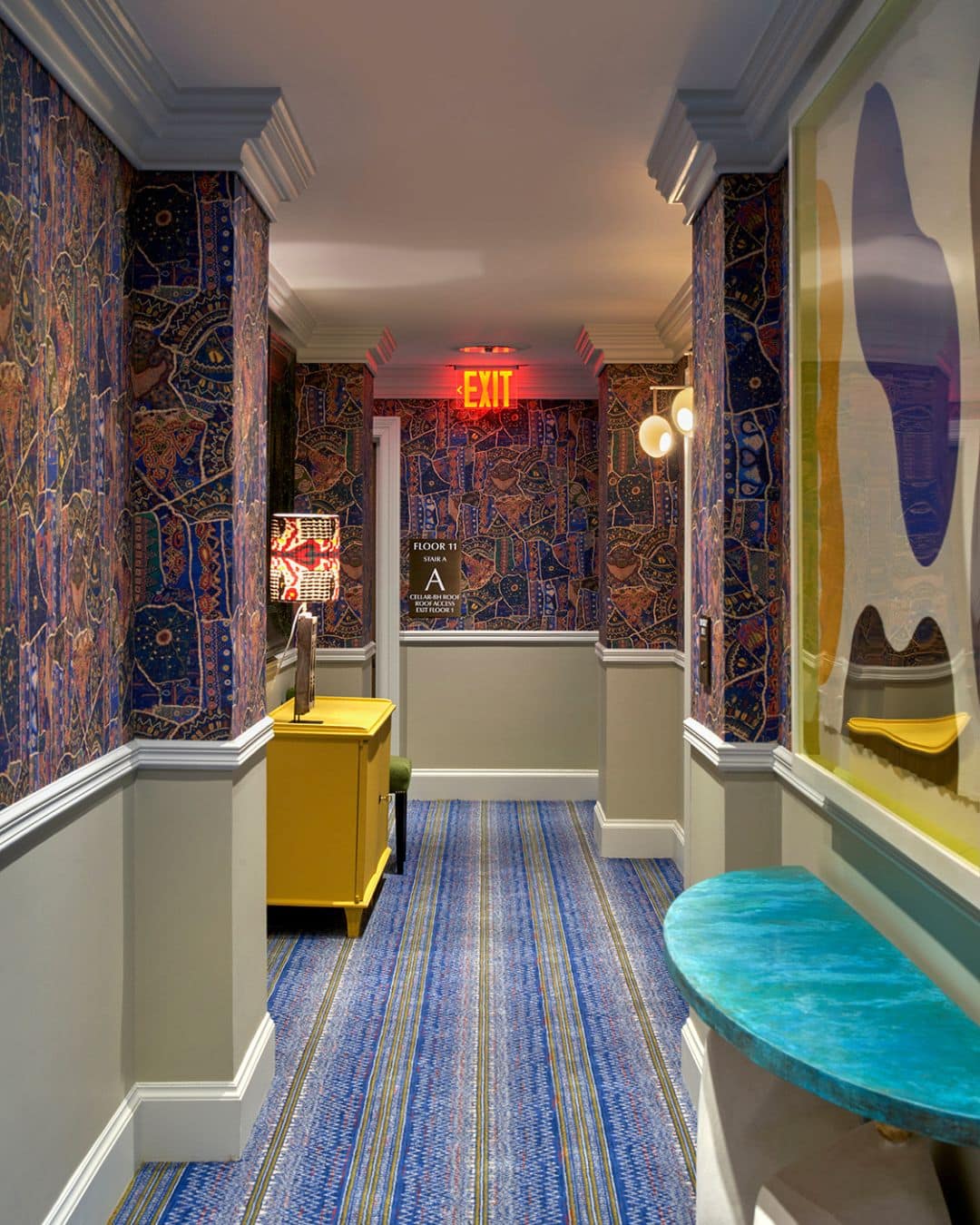 Corridors are often overlooked, yet they offer endless opportunities for design. Patterned wallpaper, textured or boldly coloured flooring and carefully chosen furniture can transform a simple passage into a dynamic experience. Art and sculptural details create points of interest along the way, while lighting guides movement and enhances mood. Together, these elements turn corridors into spaces full of rhythm, character and subtle delight. Even a brief walk can become a memorable experience.