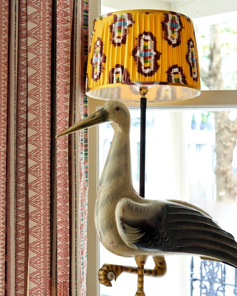 Lampshades play a quiet but important role. Fabric shades diffuse light gently, casting a warm glow. Patterned or coloured shades add another layer of interest, bringing character even when the lamp is unlit. In winter, these small details make a significant difference.