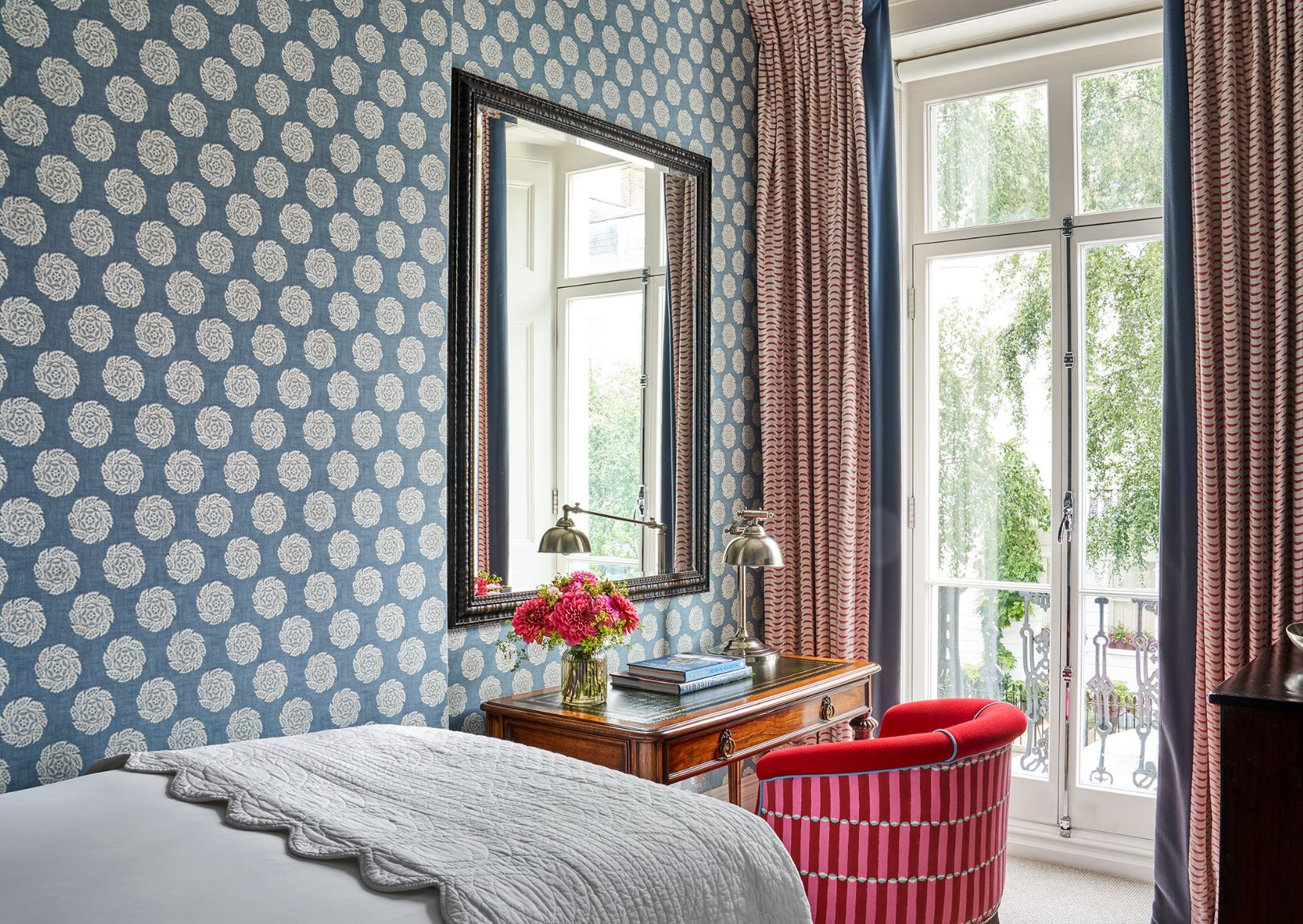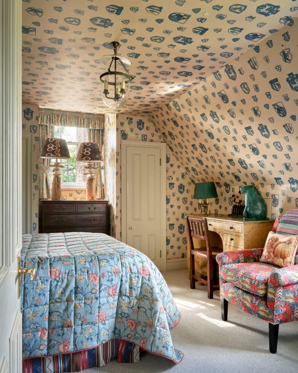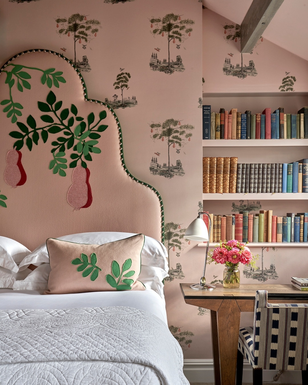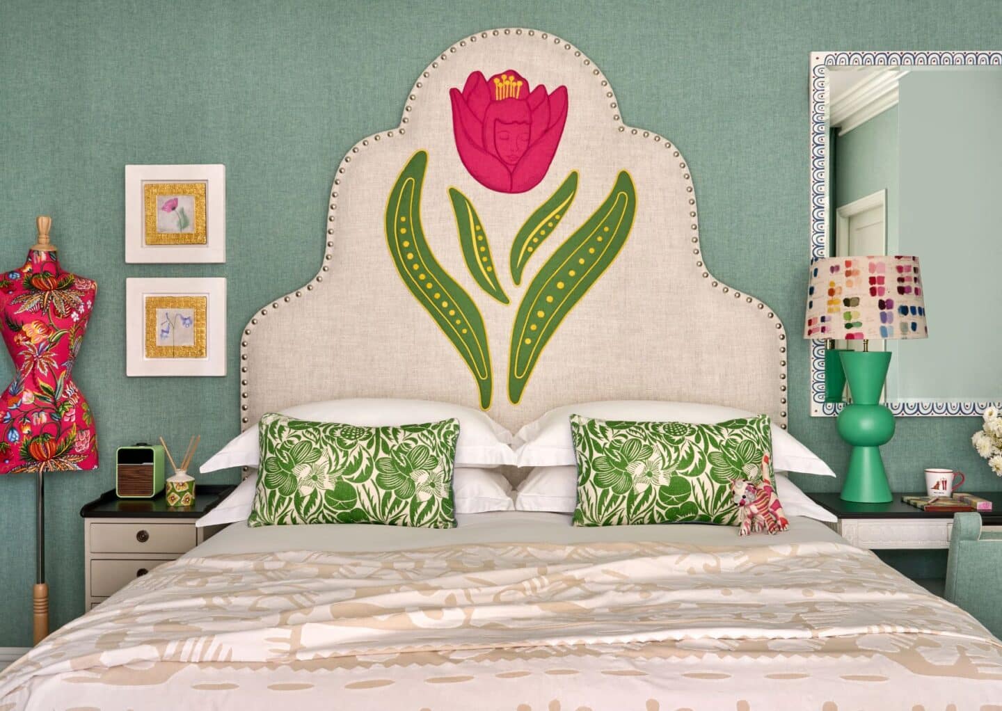 Softness is essential. Fabric lined walls introduce a quiet whisper, gently absorbing sound while adding warmth and comfort. In compact bedrooms, pattern should be embraced rather than avoided. Florals and geometrics envelop the space like a jewel box, creating richness and depth. These motifs add movement and rhythm, drawing the eye around the room and giving it life. When layered thoughtfully, pattern transforms a small bedroom into something immersive, expressive and undeniably luxurious.