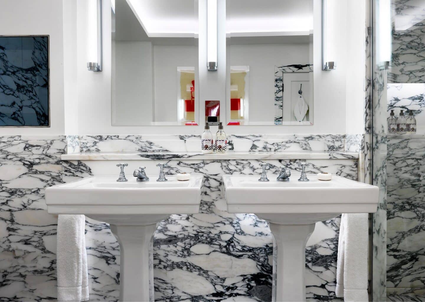 In bathrooms, alignment brings a quiet sense of order and ease. Designed around a central axis, statement pieces like freestanding bathtubs are given space to breathe. Basins, mirrors and fittings align in gentle harmony, creating a calm, connected composition where every element feels intentional.