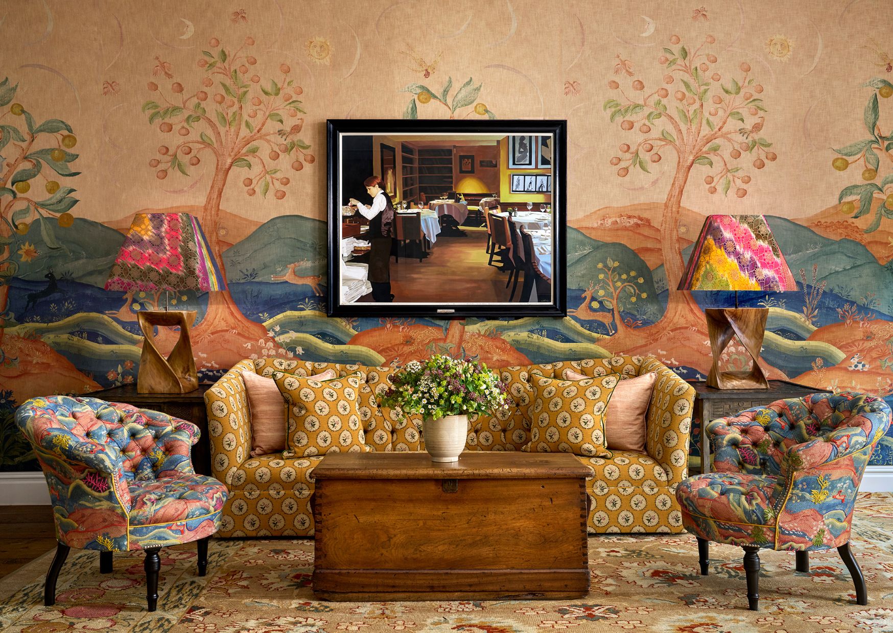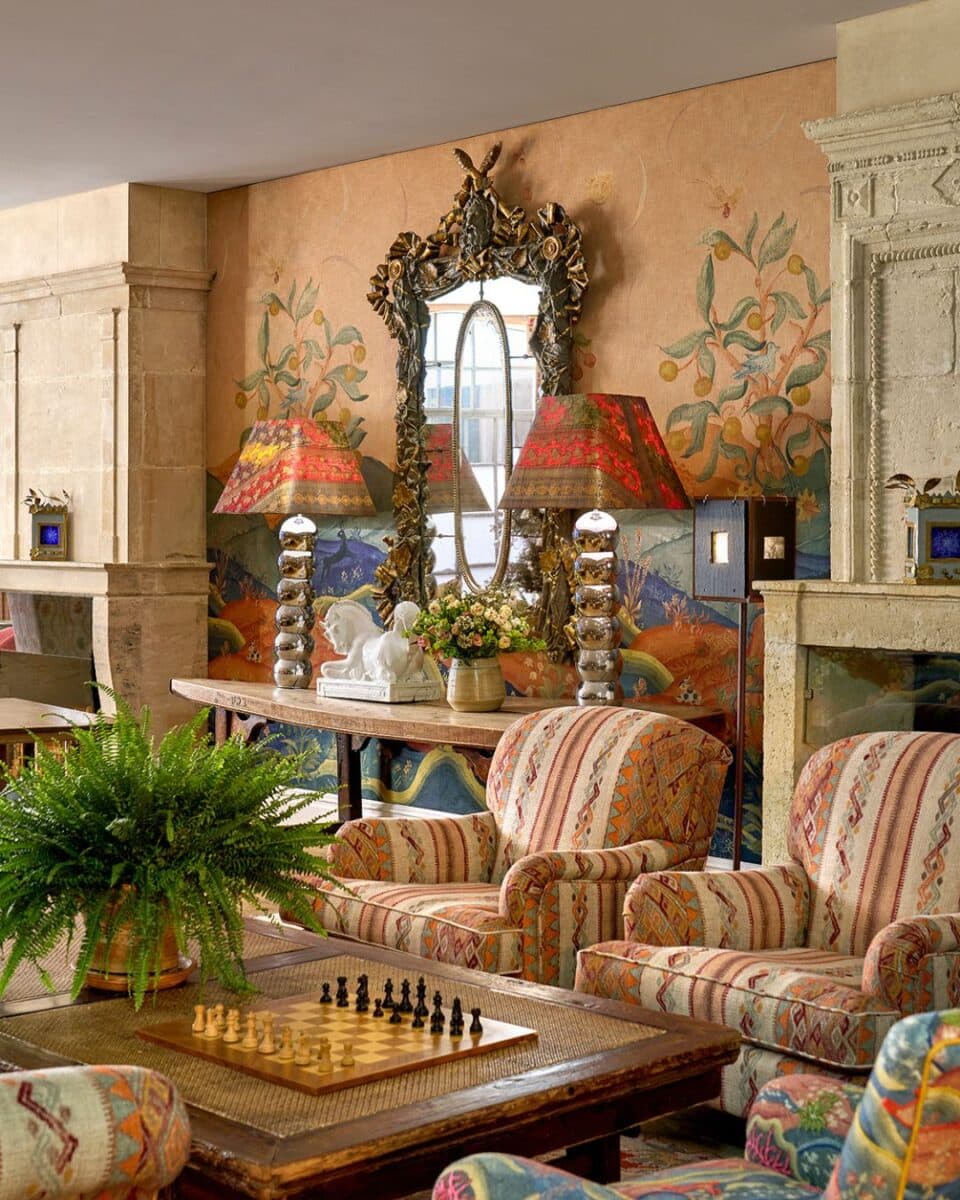 In our newly refurbished Drawing Room at The Soho Hotel, these lampshades sit proudly against our new Rufus wallpaper designed for Andrew Martin.