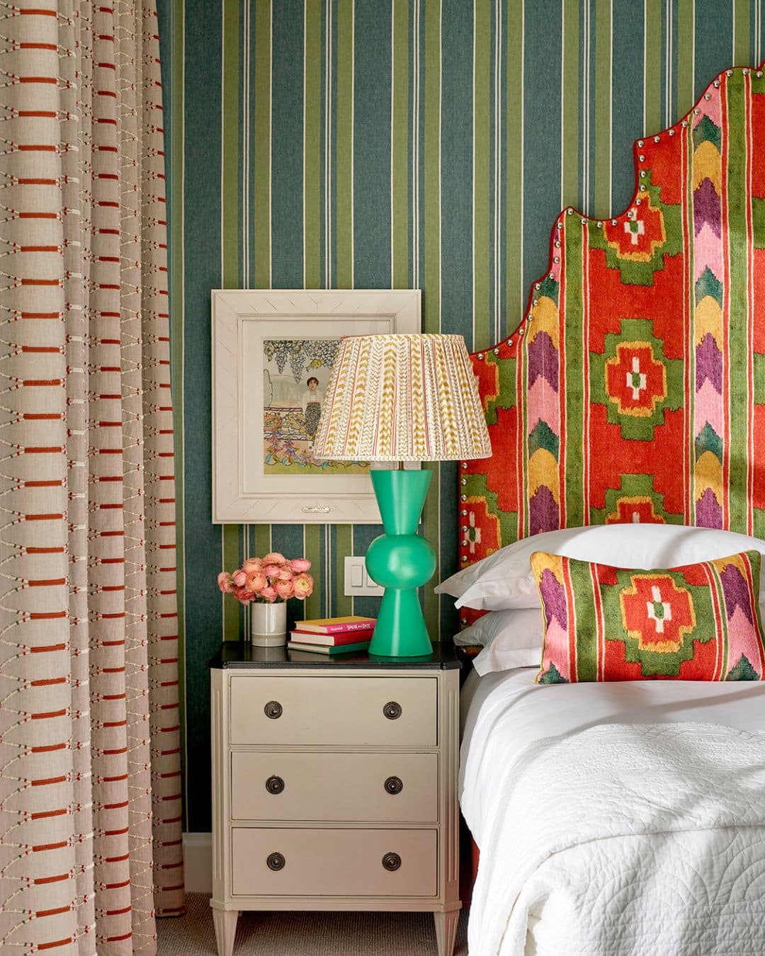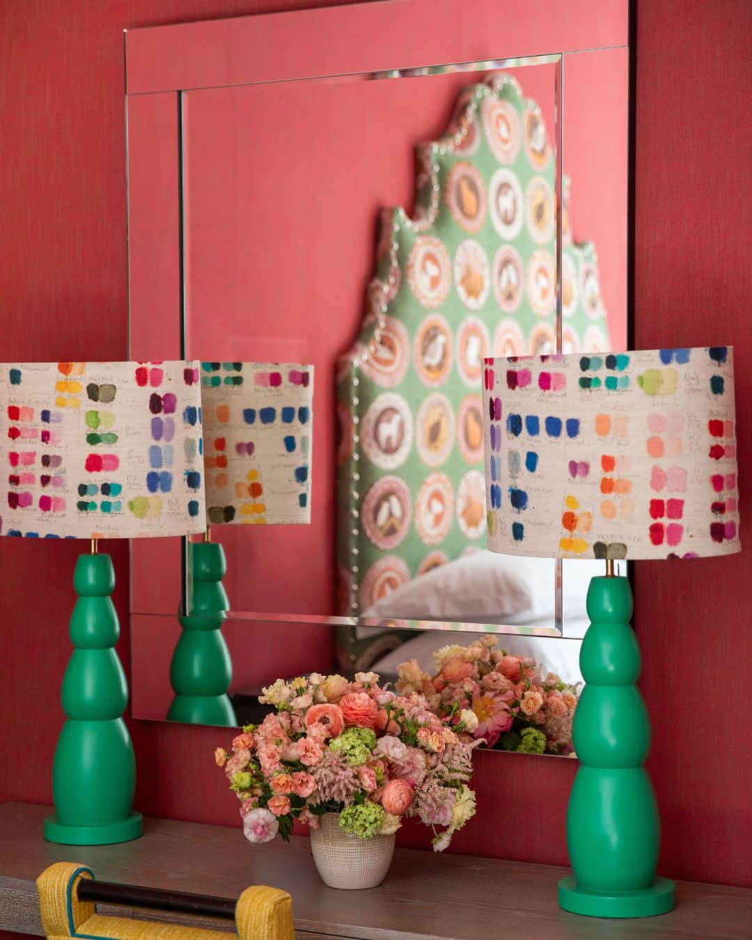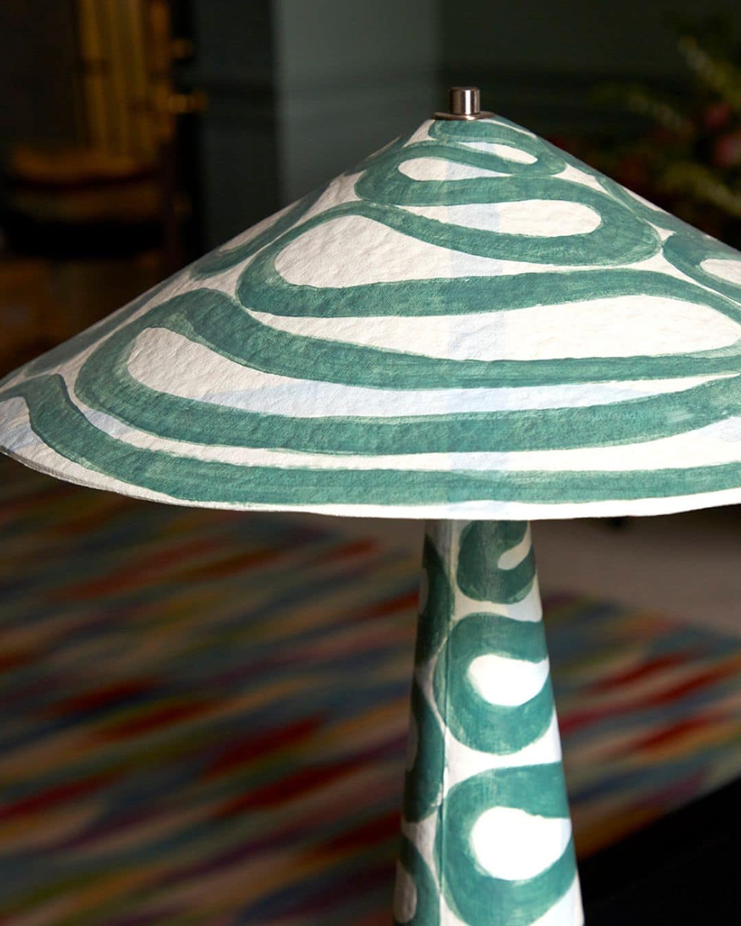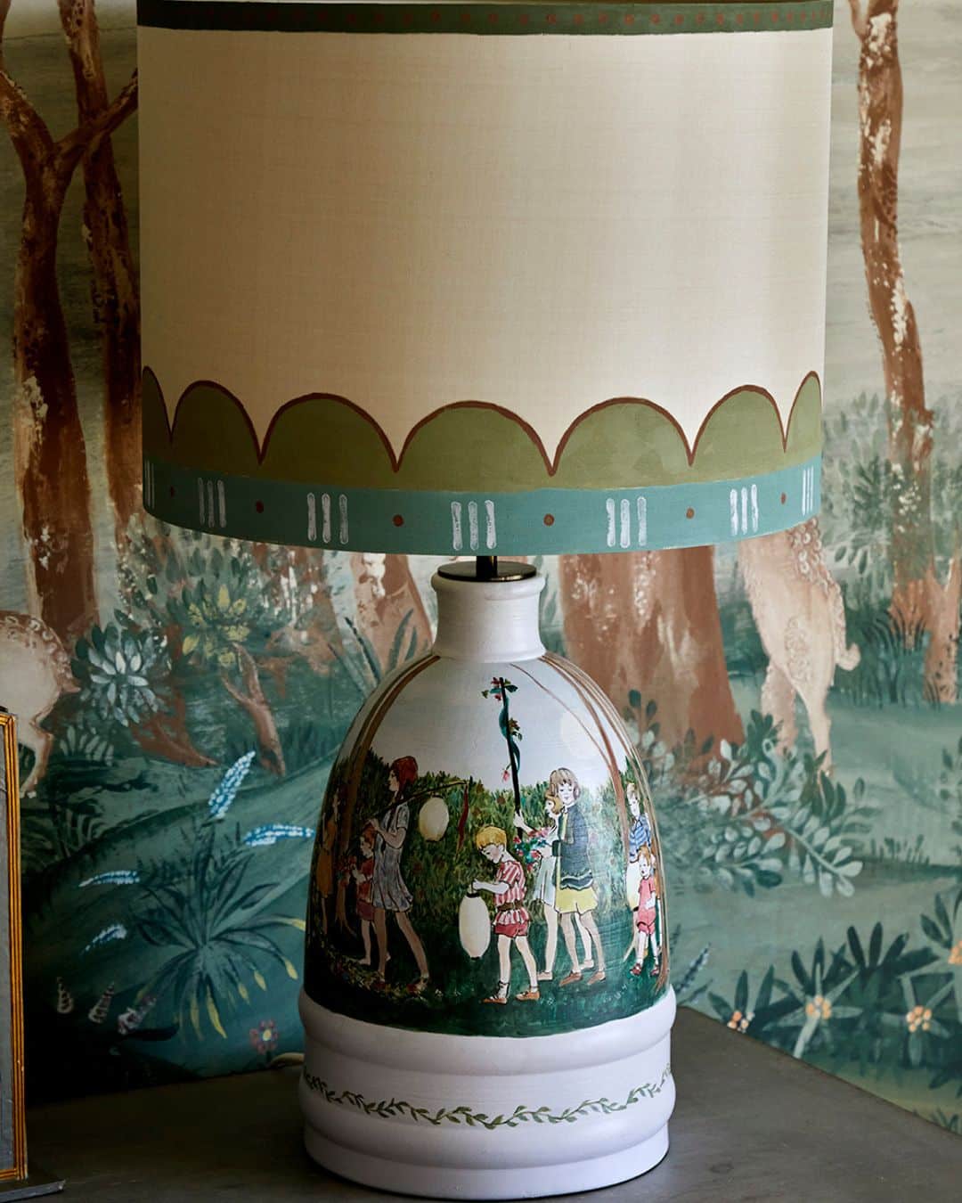Below are examples of how painted lampshades can enhance a room. From maximalist designs to hand block printed trims along the bottom, these lampshades make their own statement.