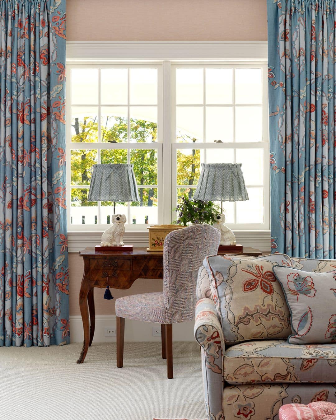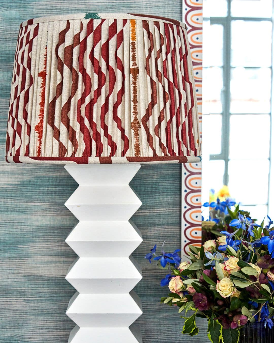We love using pleated lampshades as they create a softer, more delicate feel. When using patterned fabric in pleated lampshades, they introduce a different rhythm, creating a sense of movement that avoids a rigid appearance.