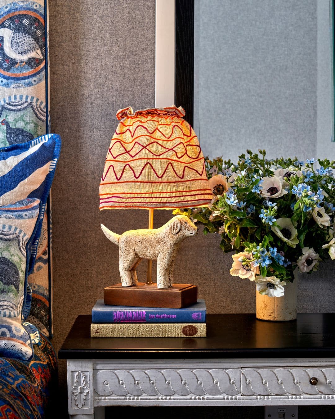 We especially love our Doggy Lamp, with its embroidered fabric shade, which makes it truly unique and special.