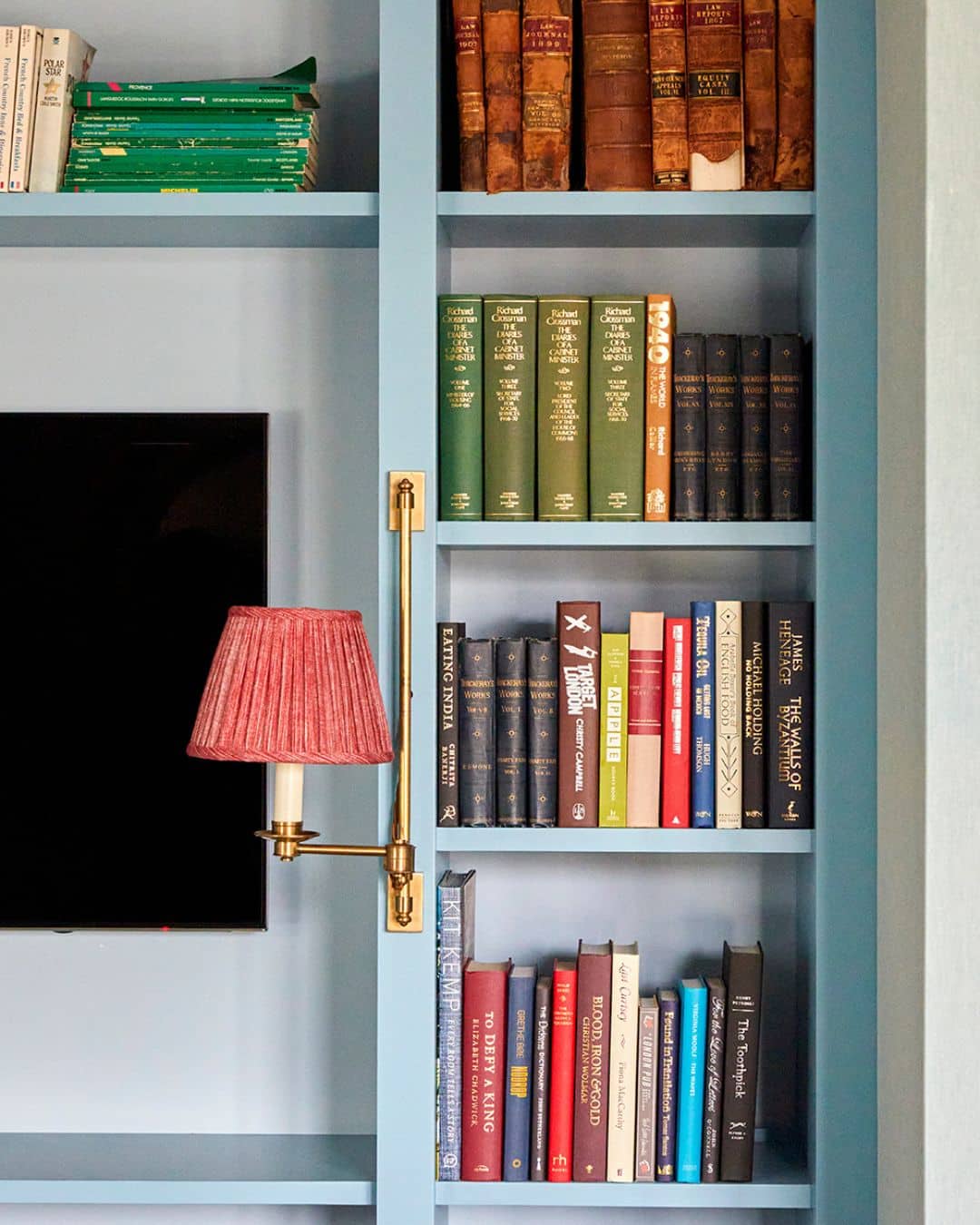 If your room already feels complete, you can still add interest with a simple detail. For example, we have highlighted the accent colour by applying it to the top and bottom rim of the lampshade.