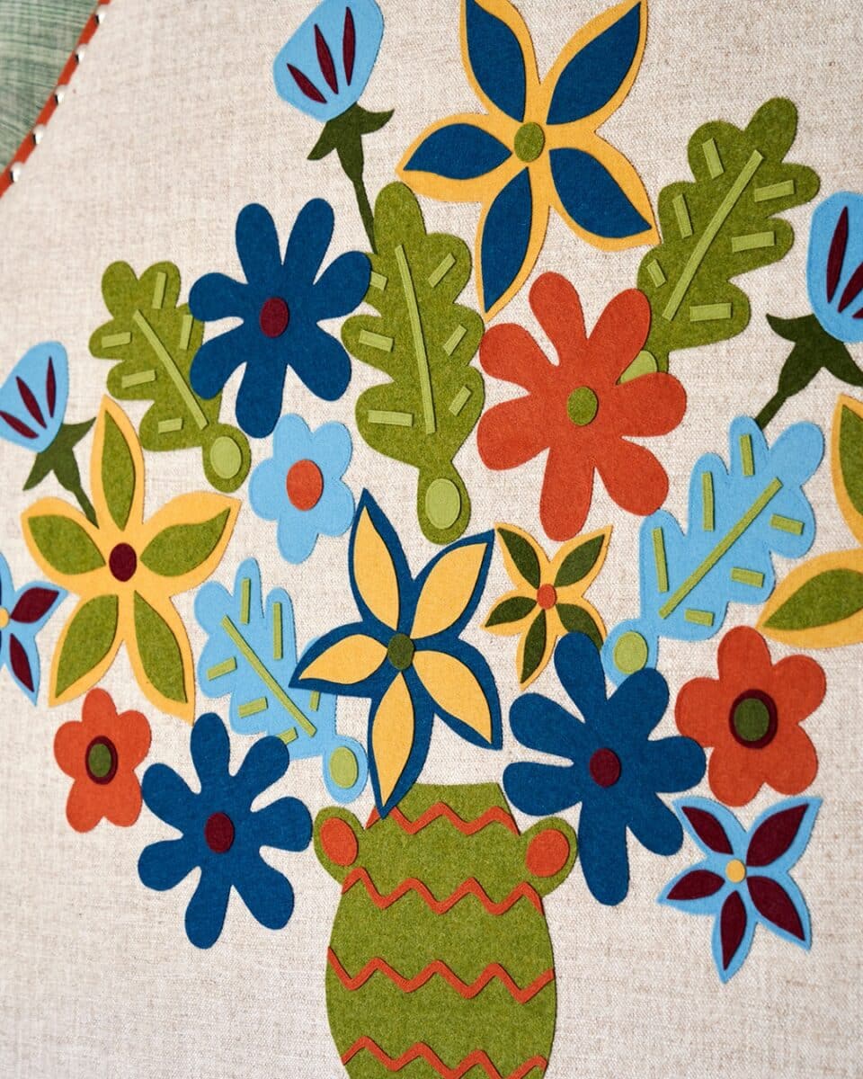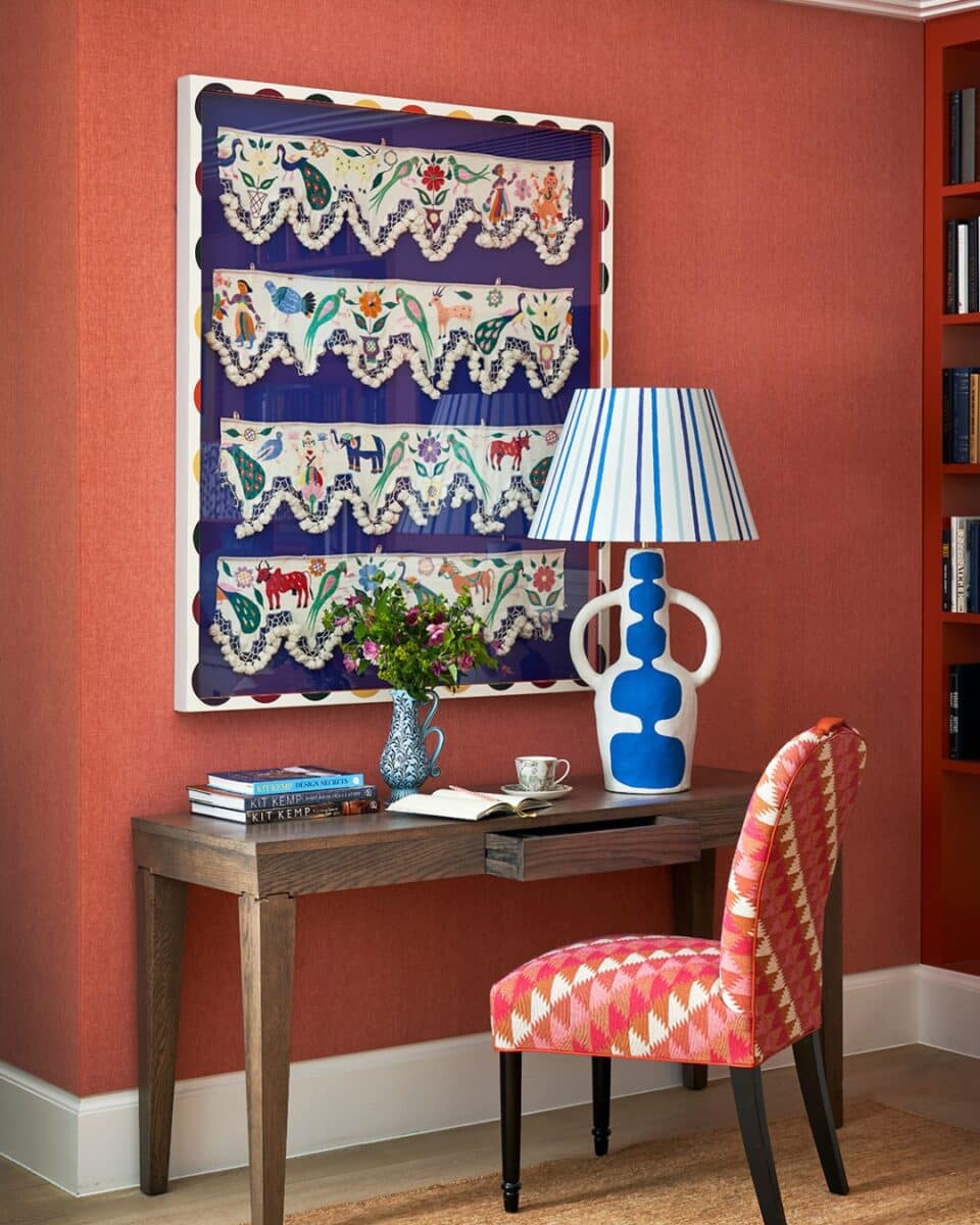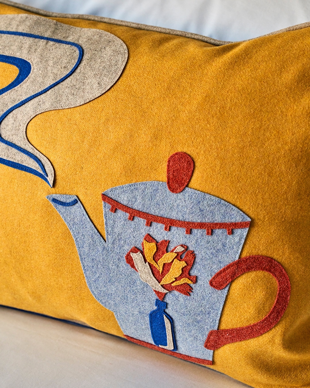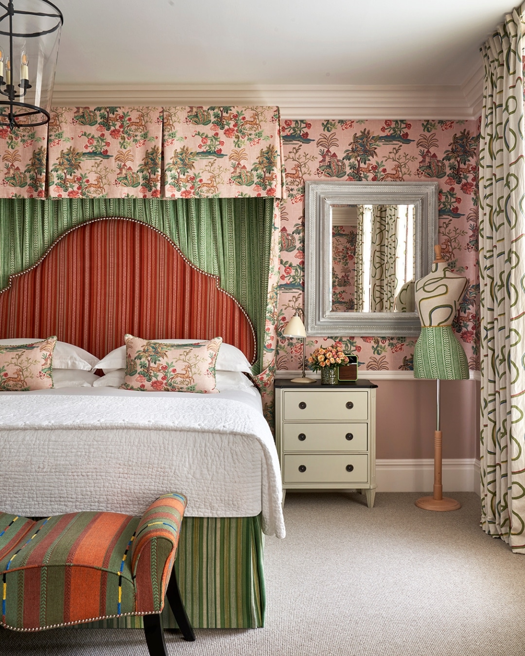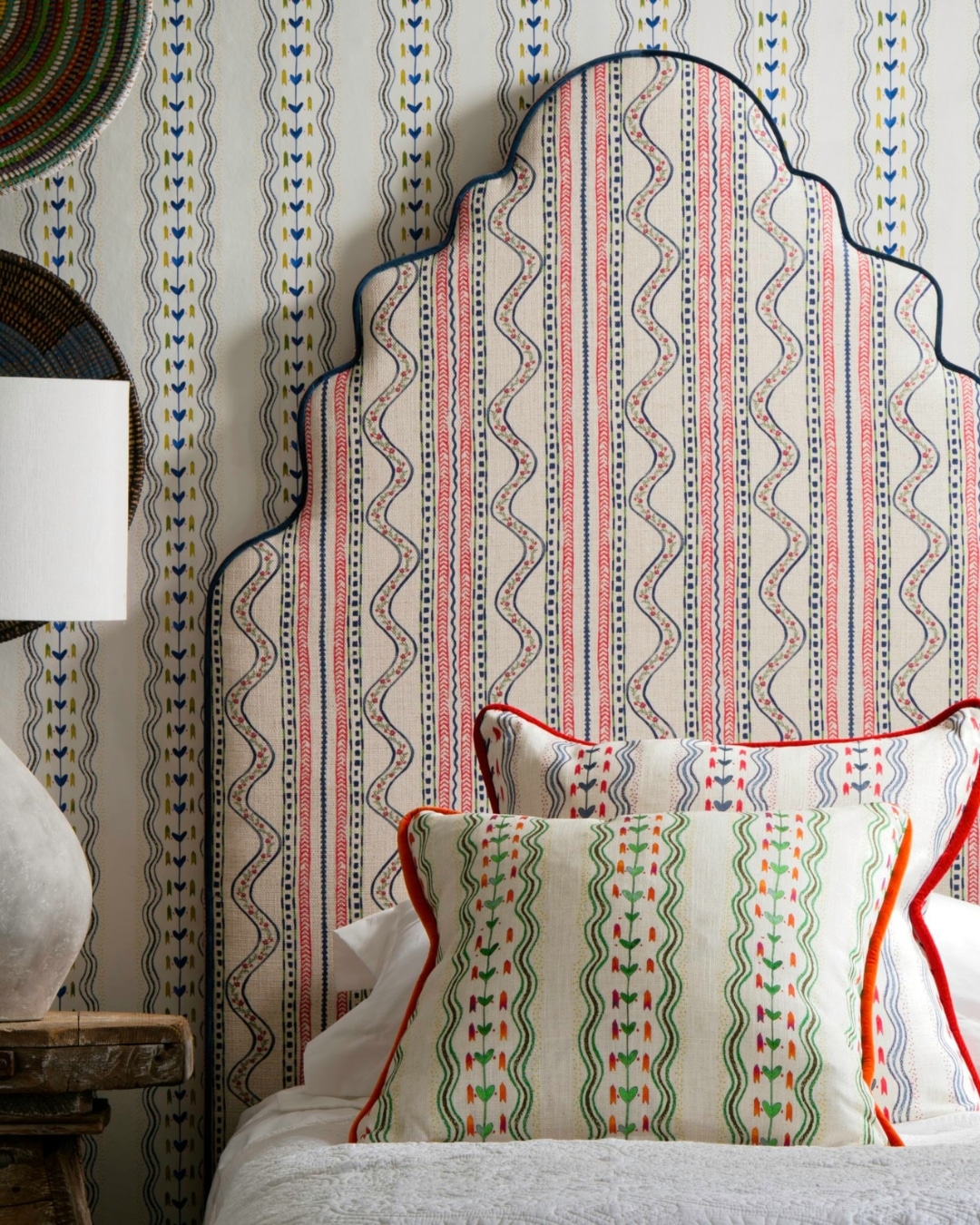 We love mixing prints, a stripe with a small-scale floral, or a bold ikat paired with tactile piping. Texture is just as important as colour. Quilts, embroidery, appliqué and stitched details add that heartfelt quality that makes a room feel personal.