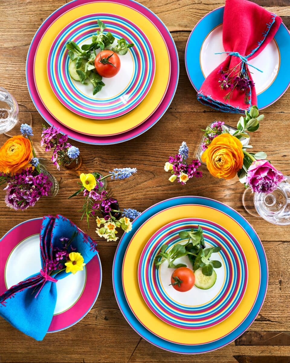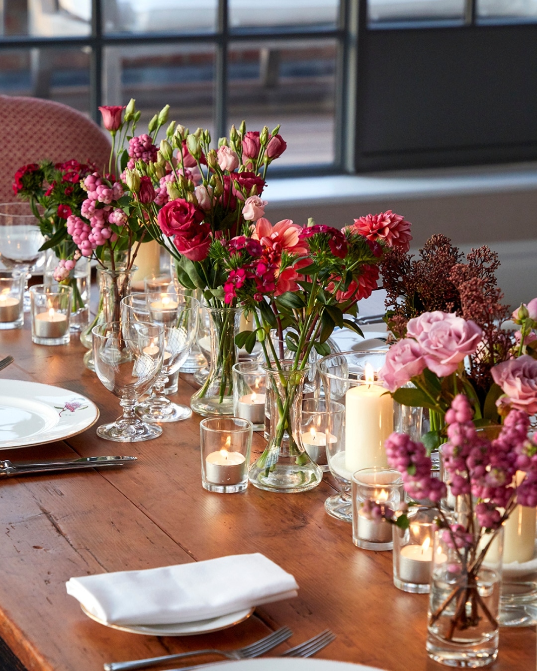 Forget overly formal bouquets. Dot small posies throughout the house, a jam jar by the bedside, a wild arrangement on the dining table. Mixing vessels such as ceramic pitchers, coloured glass and even teacups keeps things relaxed and charming. Do not shy away from unexpected blooms.