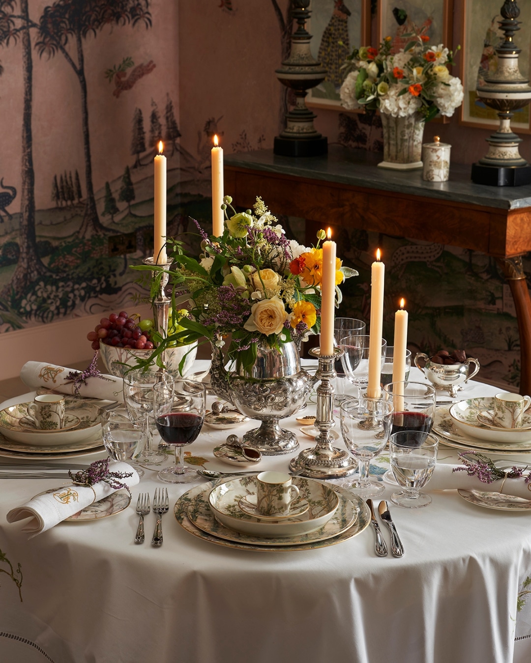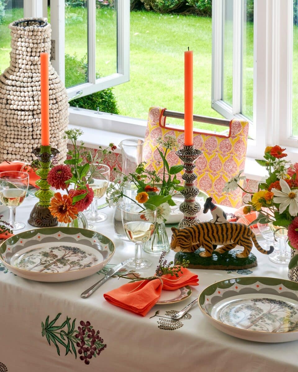 A Valentine’s supper does not need to be elaborate, it is the details that count. Layer your table in the same way you would a room. Start with a patterned cloth or block-printed napkins, add colourful glassware and perhaps a playful candleholder or two. Mismatched china always feels welcoming and tells a story. Handwritten place cards or little notes tucked into napkins add a thoughtful touch. Candlelight is essential, low and flickering. It makes everyone look wonderful.