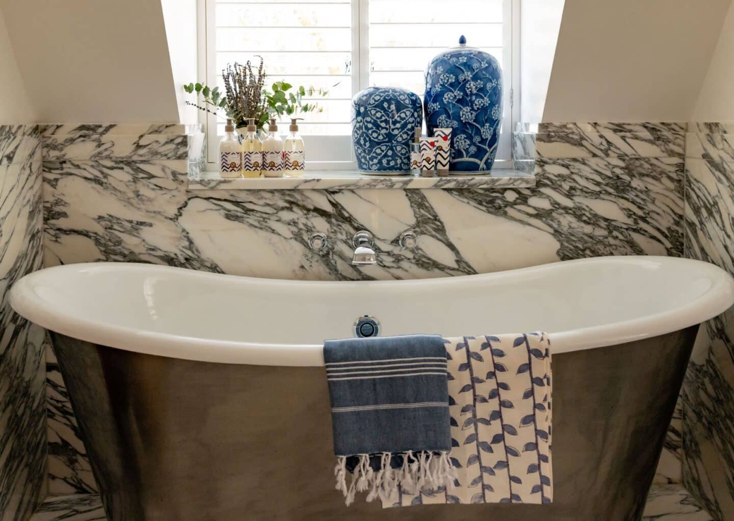 When designing a bathroom, we always favour a double-ended freestanding tub. Created with both elegance and comfort in mind, these baths feature a symmetrical shape that allows you to recline at either end for a deeply soothing experience. With the tap and waste positioned centrally, there is no uncomfortable hardware to interrupt your soak.