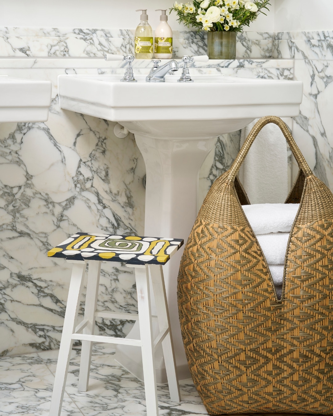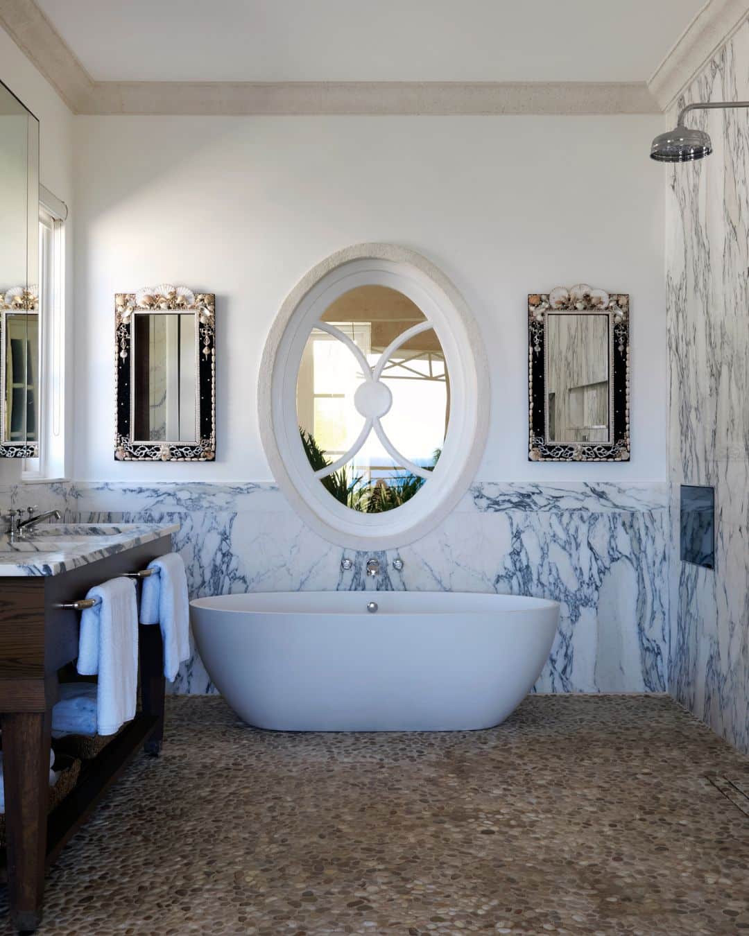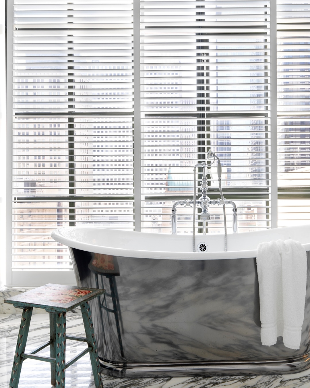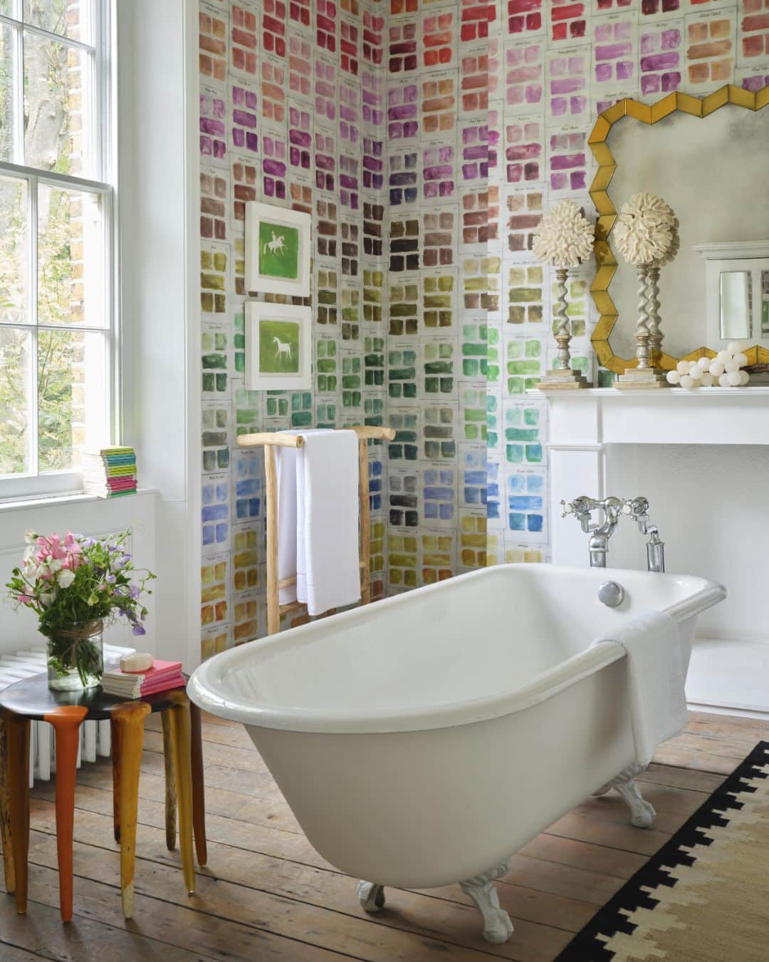 A small stool or bath tray provides a practical yet stylish surface for keeping essentials close to hand. Whether it is a beautifully wrapped bar of soap, a favourite candle or a plush towel, having everything within reach enhances the sense of ease and indulgence.