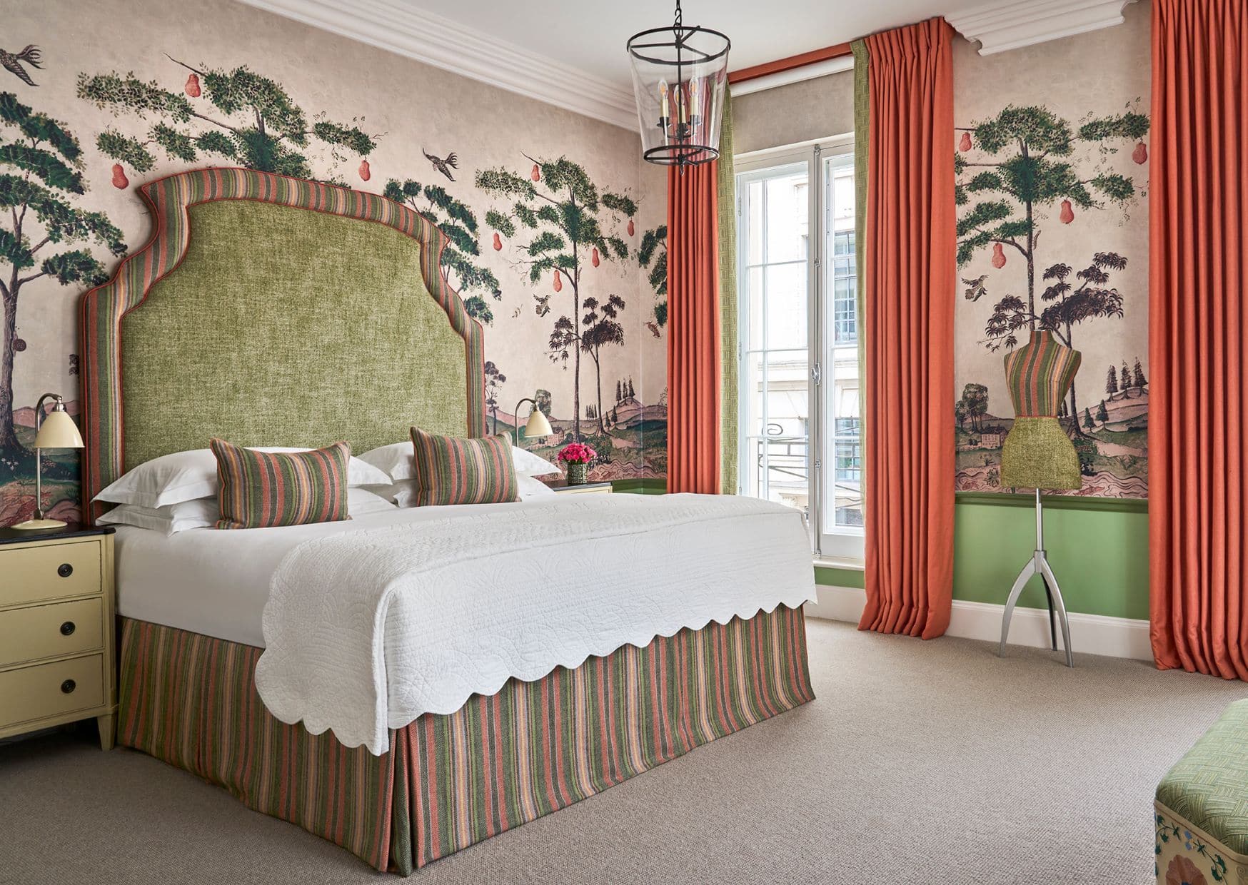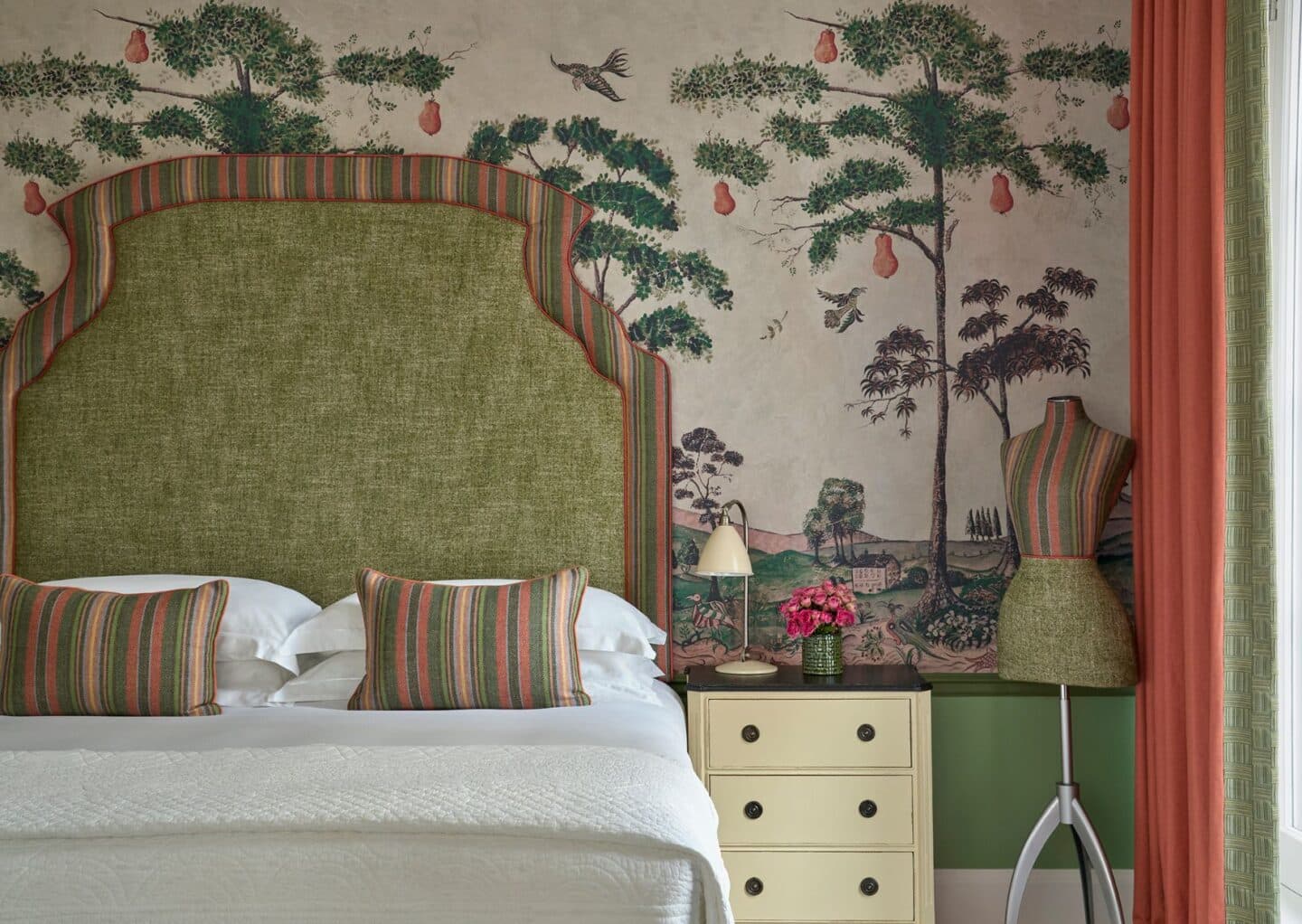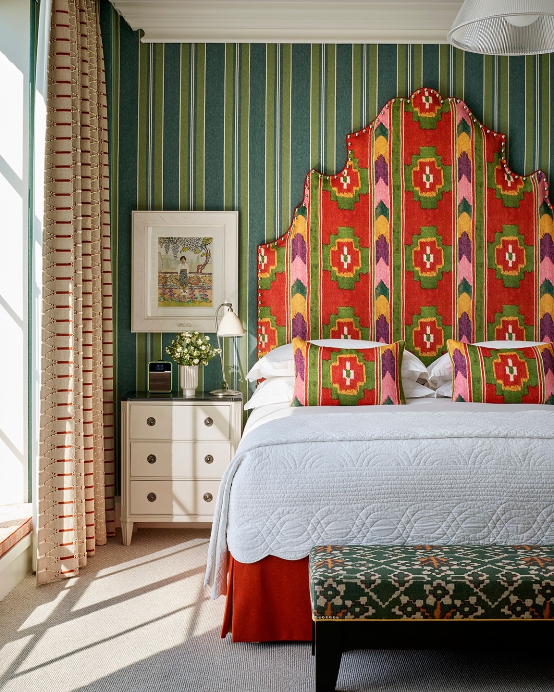 A wrapped chest of drawers in our Over the Moon fabric with Andrew Martin, seen in this room at Covent Garden Hotel, or the animal fabric used in the room below at Haymarket Hotel, turns a practical piece into something tactile, personal and entirely unique.