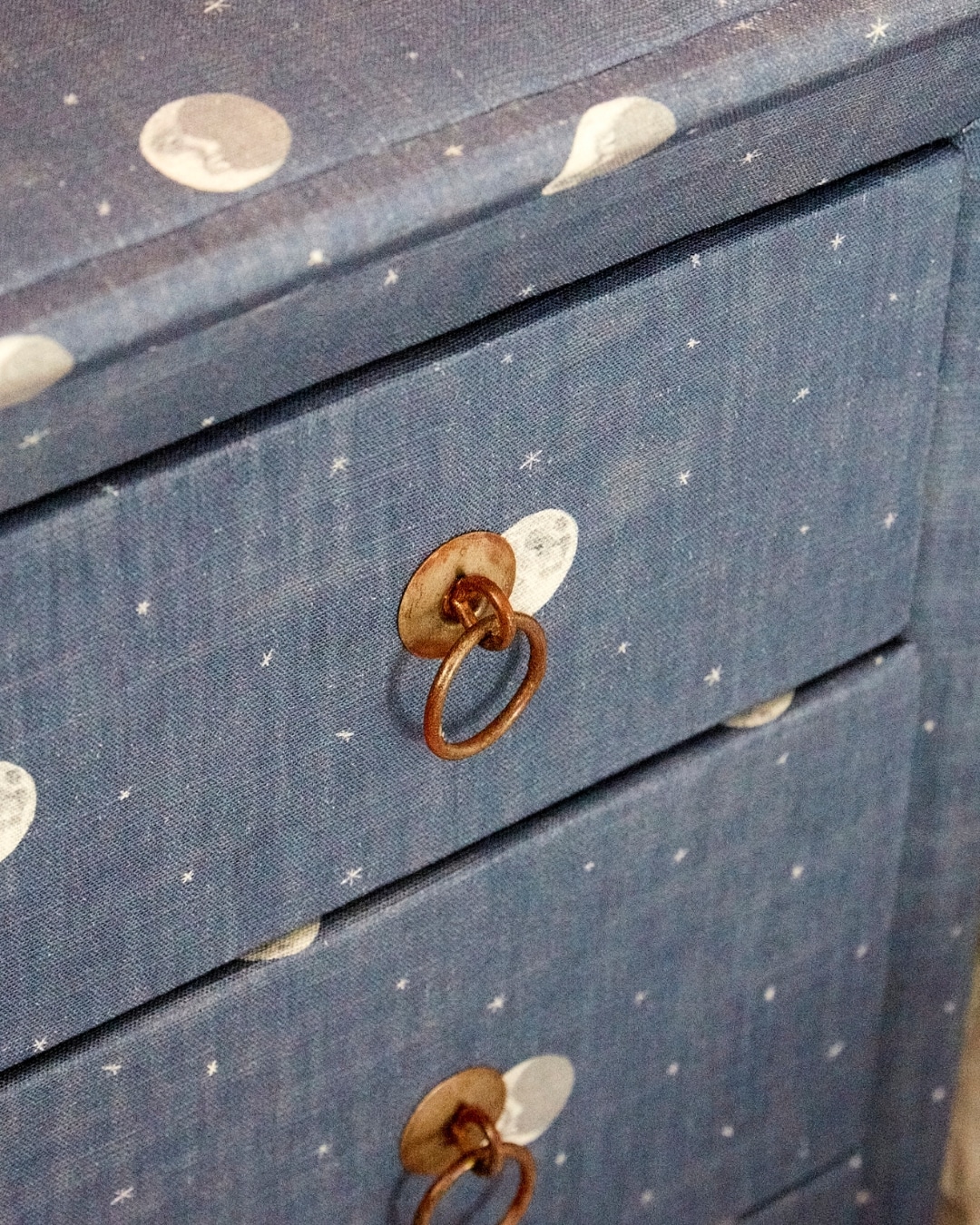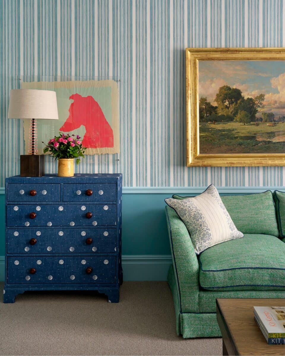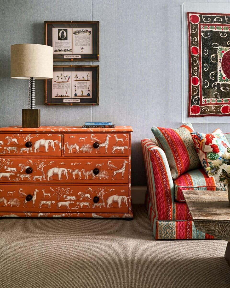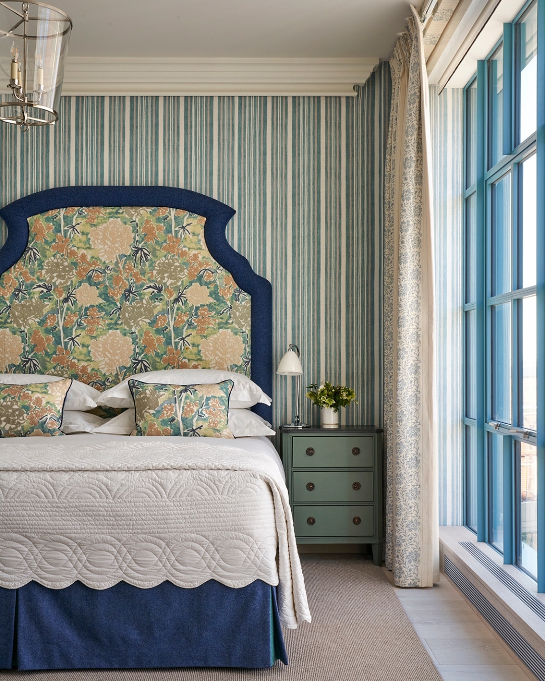 A wrapped chest of drawers in our Over the Moon fabric with Andrew Martin, seen in this room at Covent Garden Hotel, or the animal fabric used in the room below at Haymarket Hotel, turns a practical piece into something tactile, personal and entirely unique.