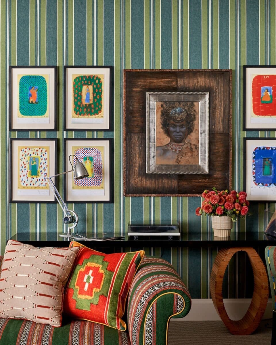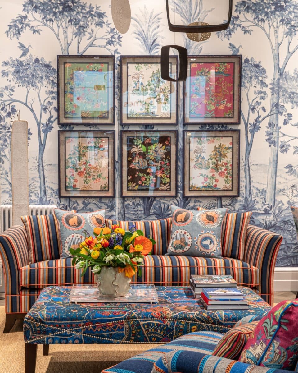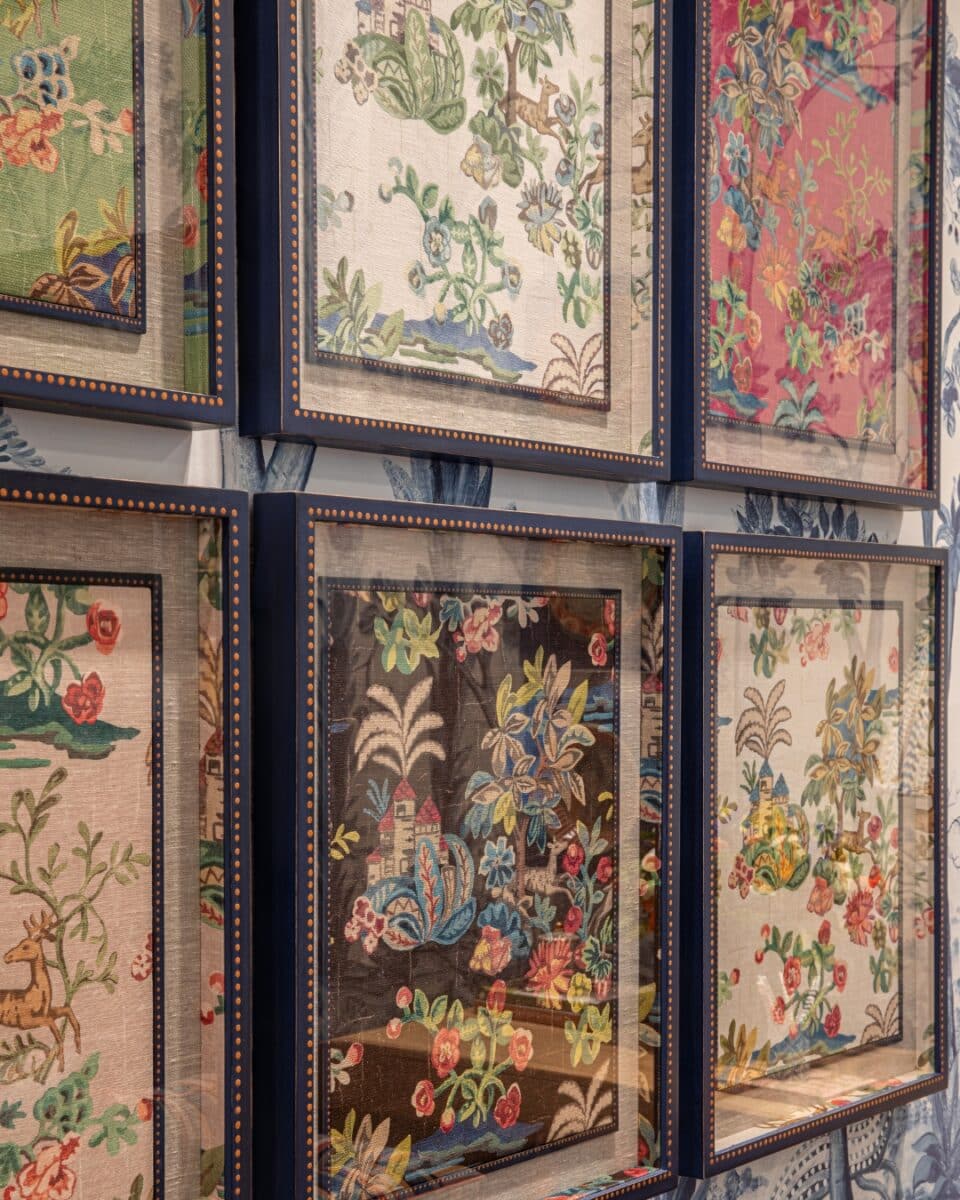 Artwork is the final element that brings a room together. From well-known artists to those waiting to be discovered, we take pride in the many ways artworks can bring creativity and light into a space. In our showroom for GP & J Baker we framed a collection of fabrics from the range, creating a conversation between what sits inside the frame and what surrounds it.