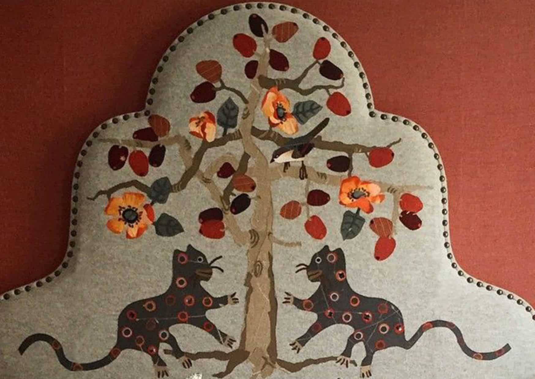 One piece that stands out is a headboard titled Tree of Life, featuring a fruit tree and two cats. It was my first piece for Kit, and at the time it felt almost unreal, an opportunity I had not expected. What made it particularly meaningful was not only the creative challenge, but also the experience of being treated with genuine respect as a craftsperson, which had not always been the case. Whenever I look back at that work, I am reminded of how significant that moment was in my journey.