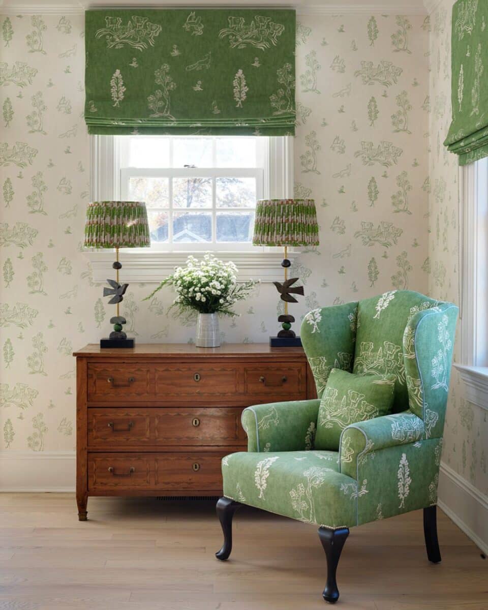 Even the smallest touch of green can transform a space. A railing painted in a soft sage, a door in rich emerald, or cabinets washed in a gentle leafy hue can instantly bring a room to life. These small gestures create unexpected points of interest while echoing the beauty of the natural world.