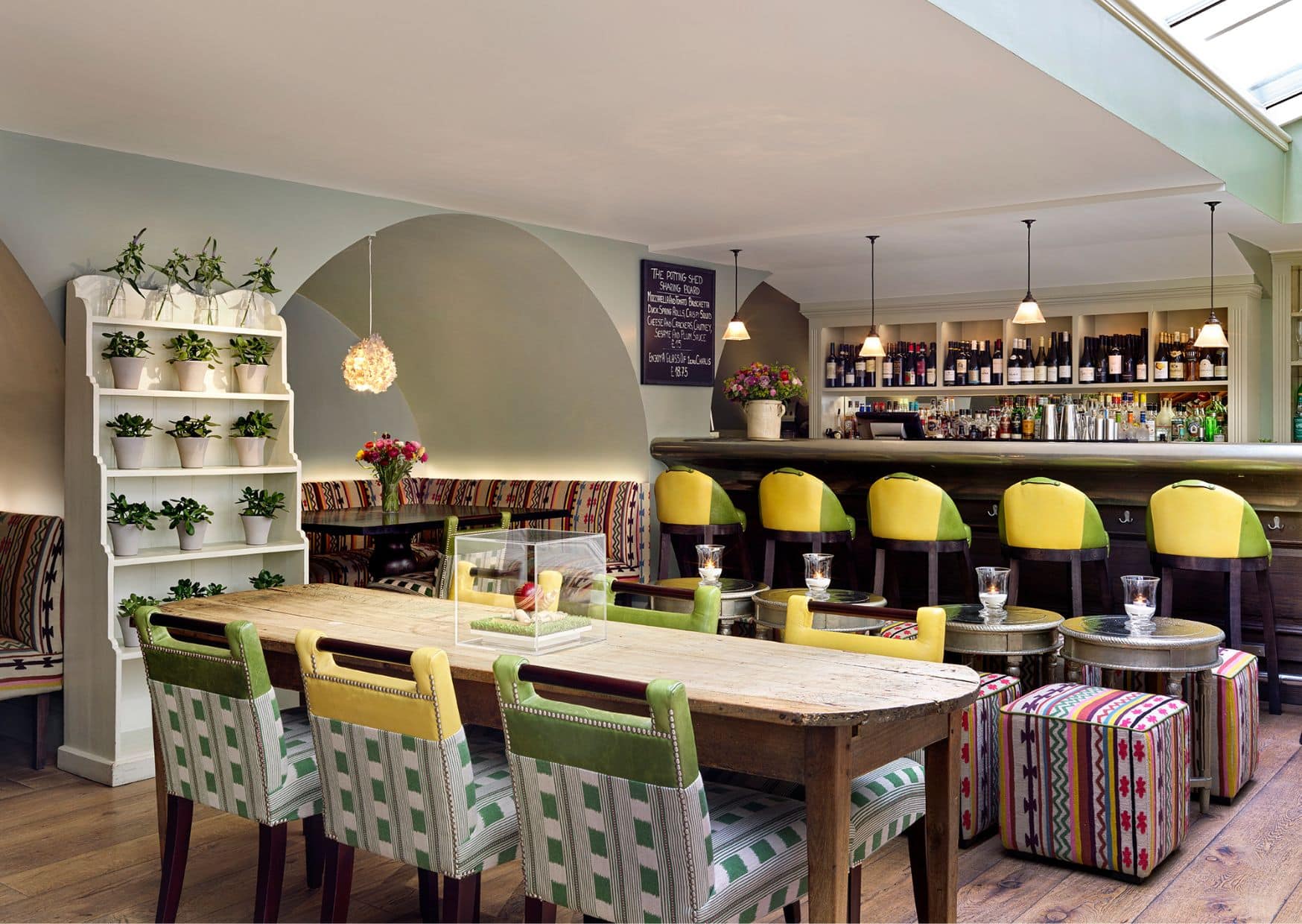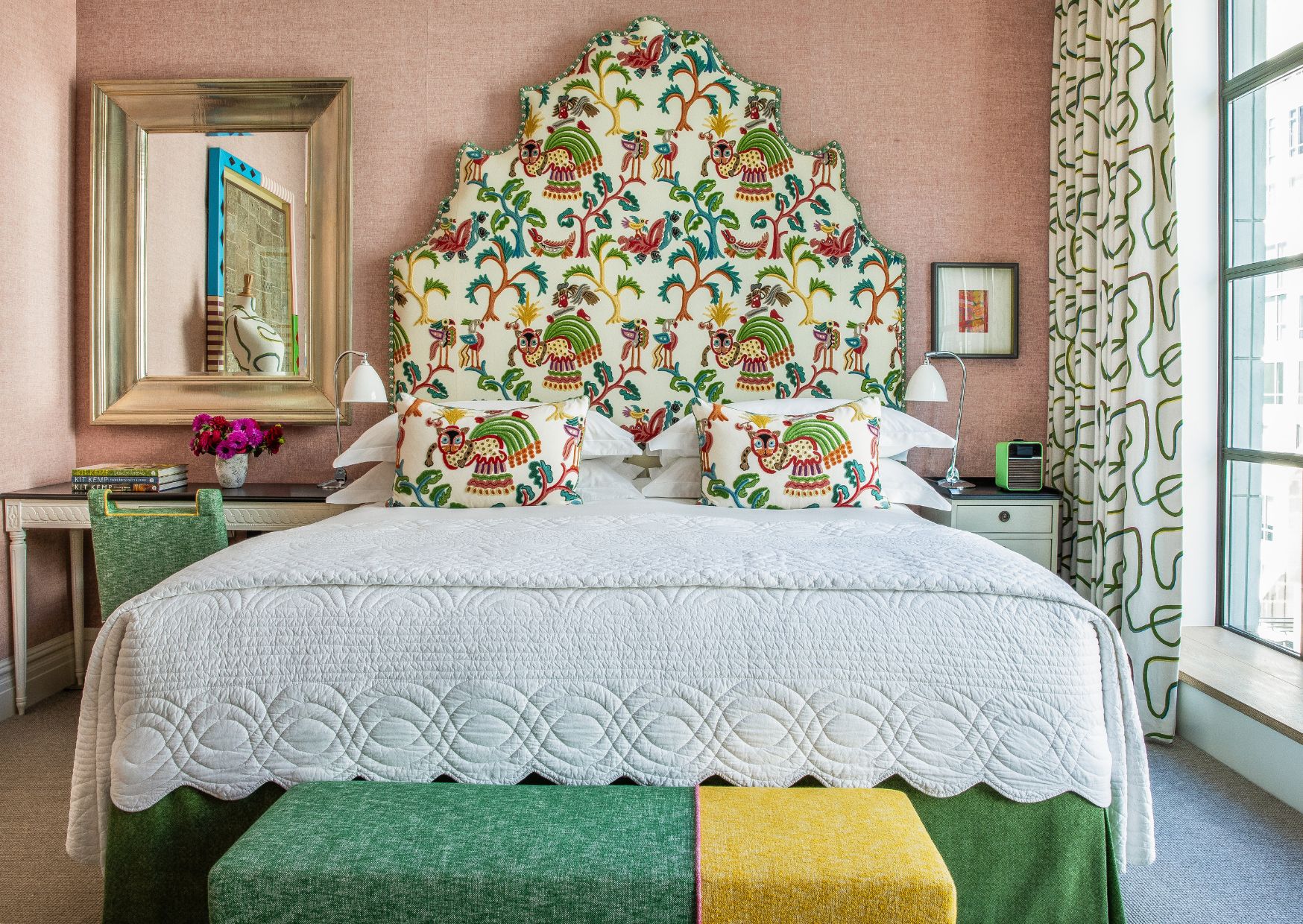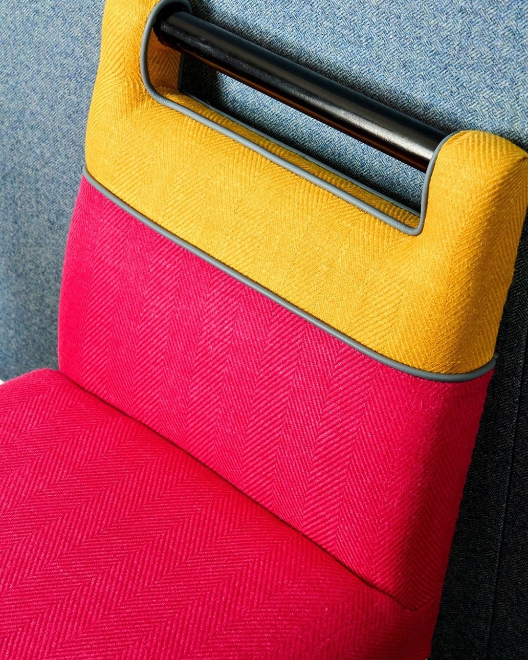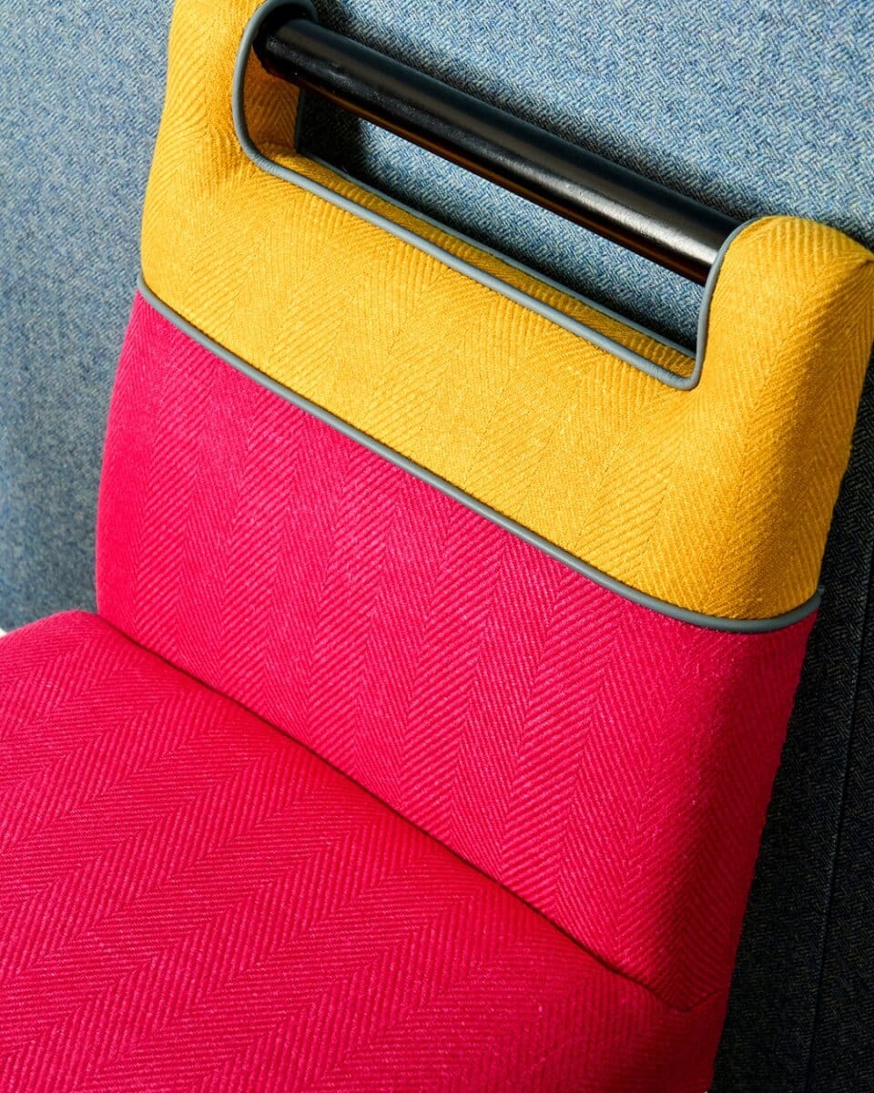 One of the most recognisable examples of split upholstery at Firmdale Hotels is the Handle Chair. Throughout our hotels, you will often find two-tone chairs upholstered in a lively patterned fabric, paired with a bold plain or leather.