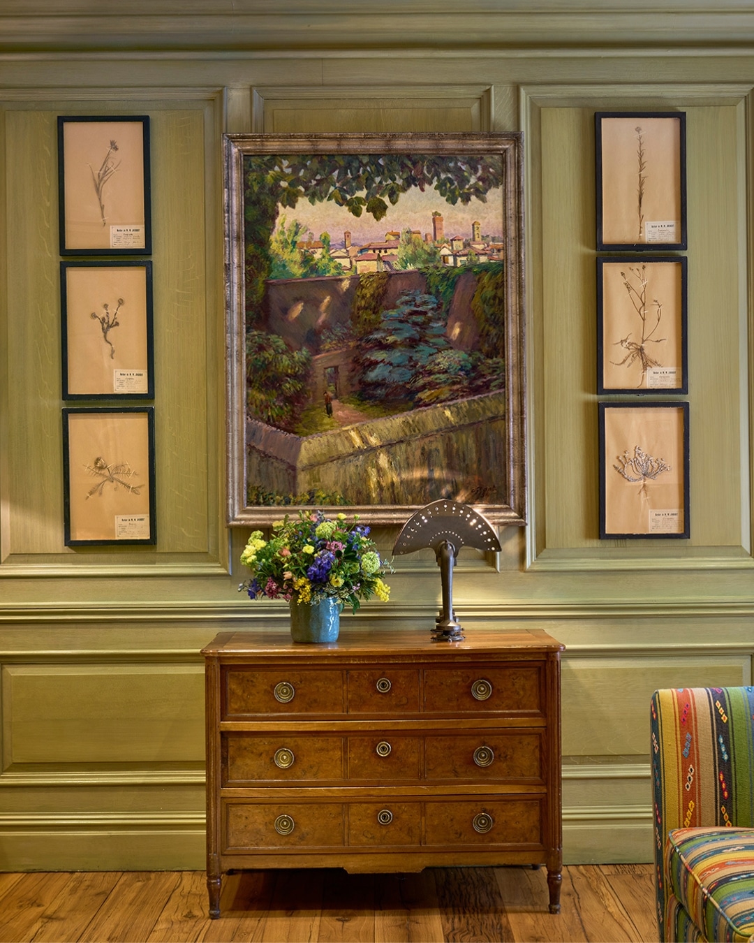 Pattern plays an equally important role. Botanical prints, organic motifs and hand-drawn designs bring a sense of life and movement into a space. Whether it is a fabric adorned with vines or a wallpaper that echoes the rhythm of leaves in the wind, these elements introduce fluid, organic forms that build harmony between indoors and outdoors. They invite the eye to wander, much as one would in nature, discovering new details with each glance.