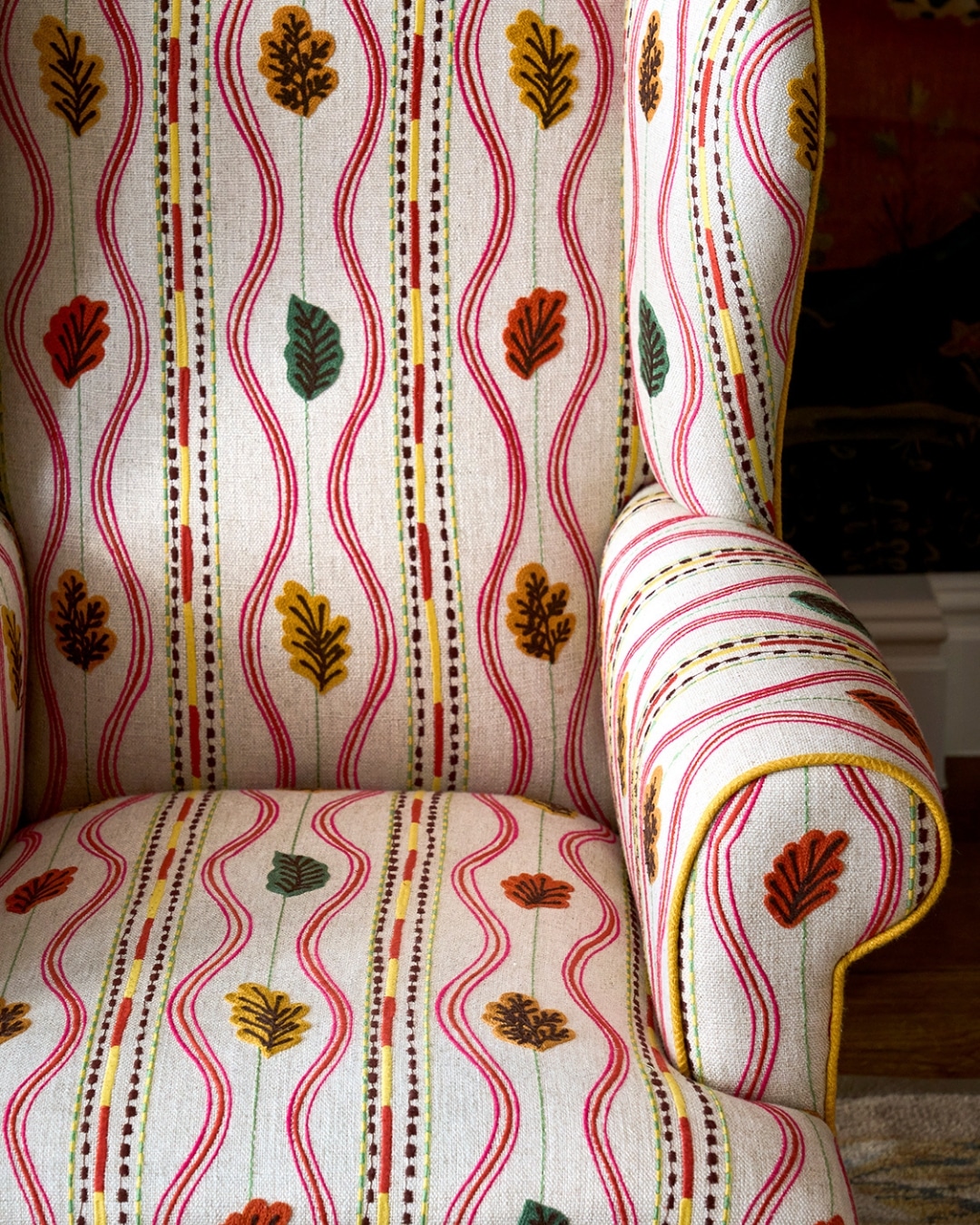 In our recent collections with Andrew Martin and GP & J Baker, we celebrate the natural world and the wonder of the outdoors. Our Andrew Martin Falling Leaves fabric captures the playful cadence of the changing seasons, while GP & J Baker’s Tudor Rose fabric translates floral forms and hues into something more abstract and painterly.