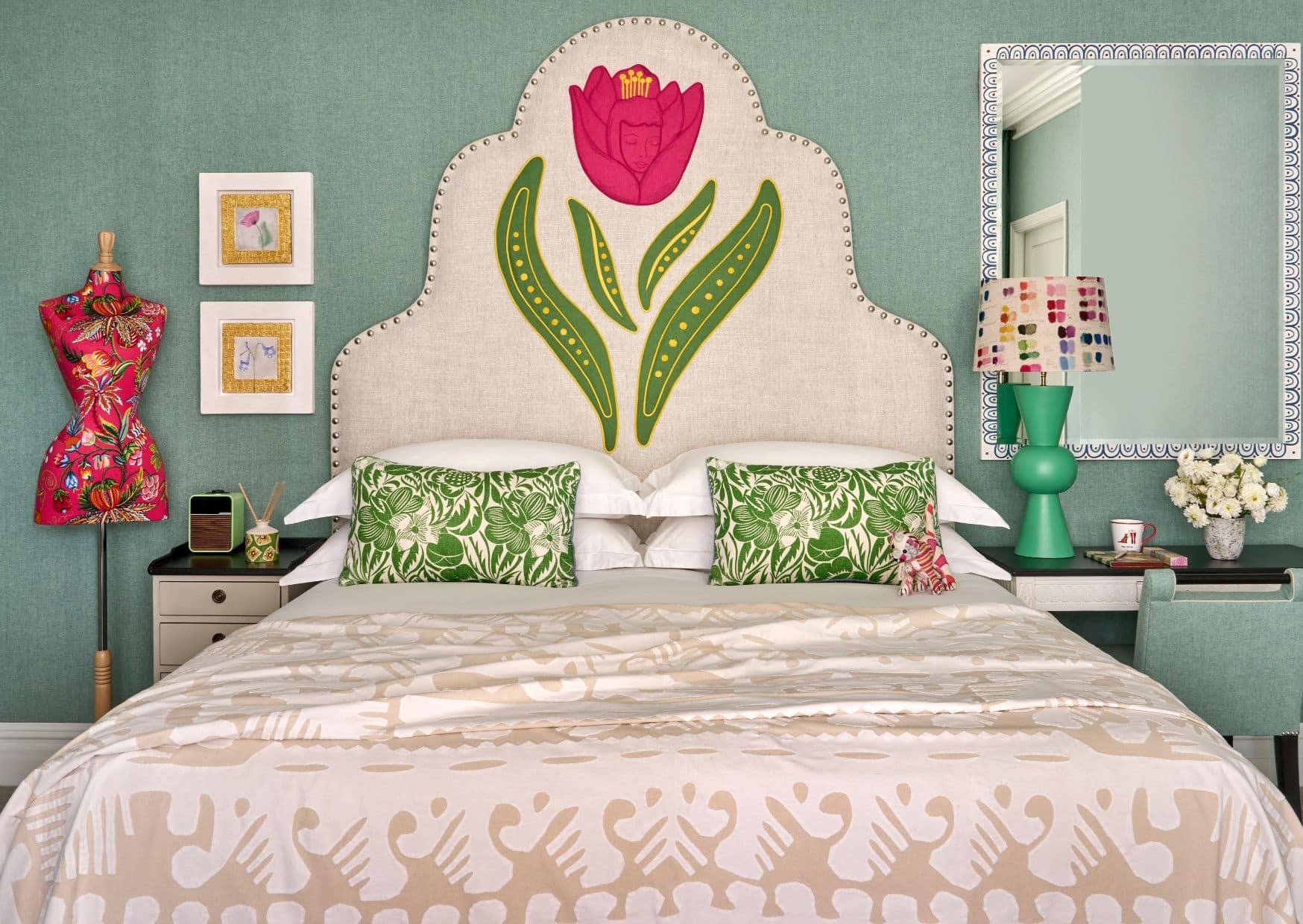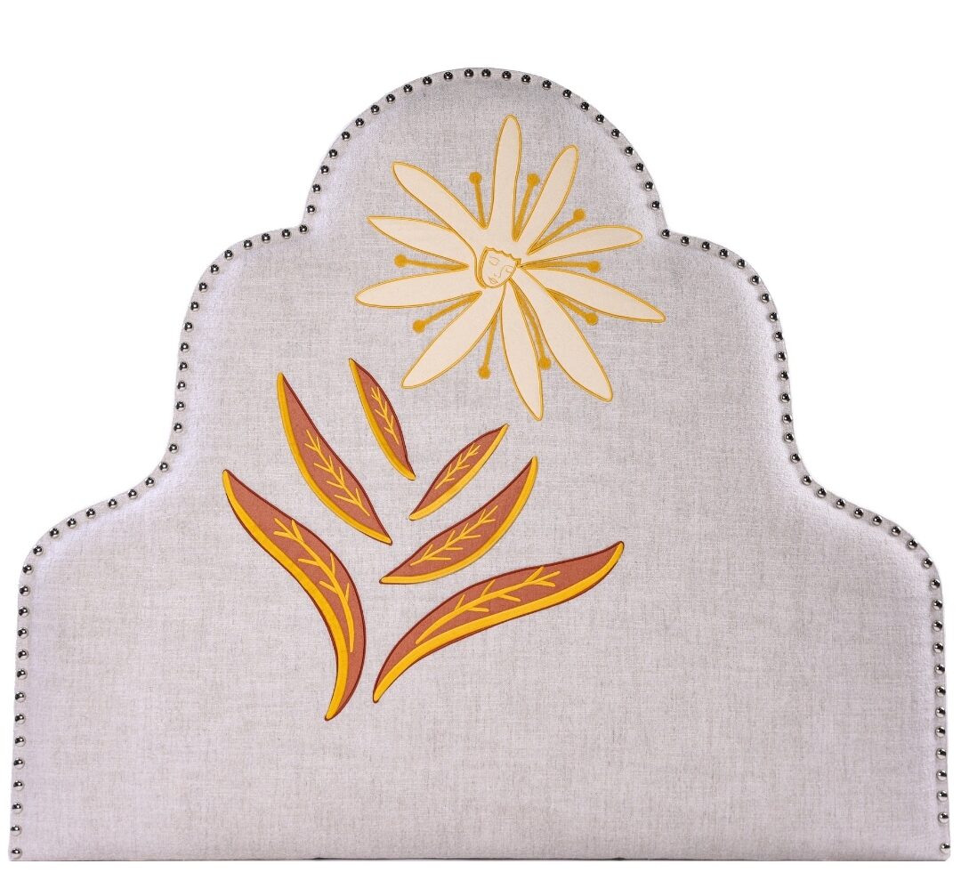 The ethereal figures set within the flower heads are reminiscent of shy woodland fairies. The Moonflower Collection lends a protective, dreamlike presence to any bedroom, and while trends may fade, craftsmanship endures. Each headboard in the Moonflower Collection is made by hand, using layers of intricate appliqué to tell a story of patience and skill.
