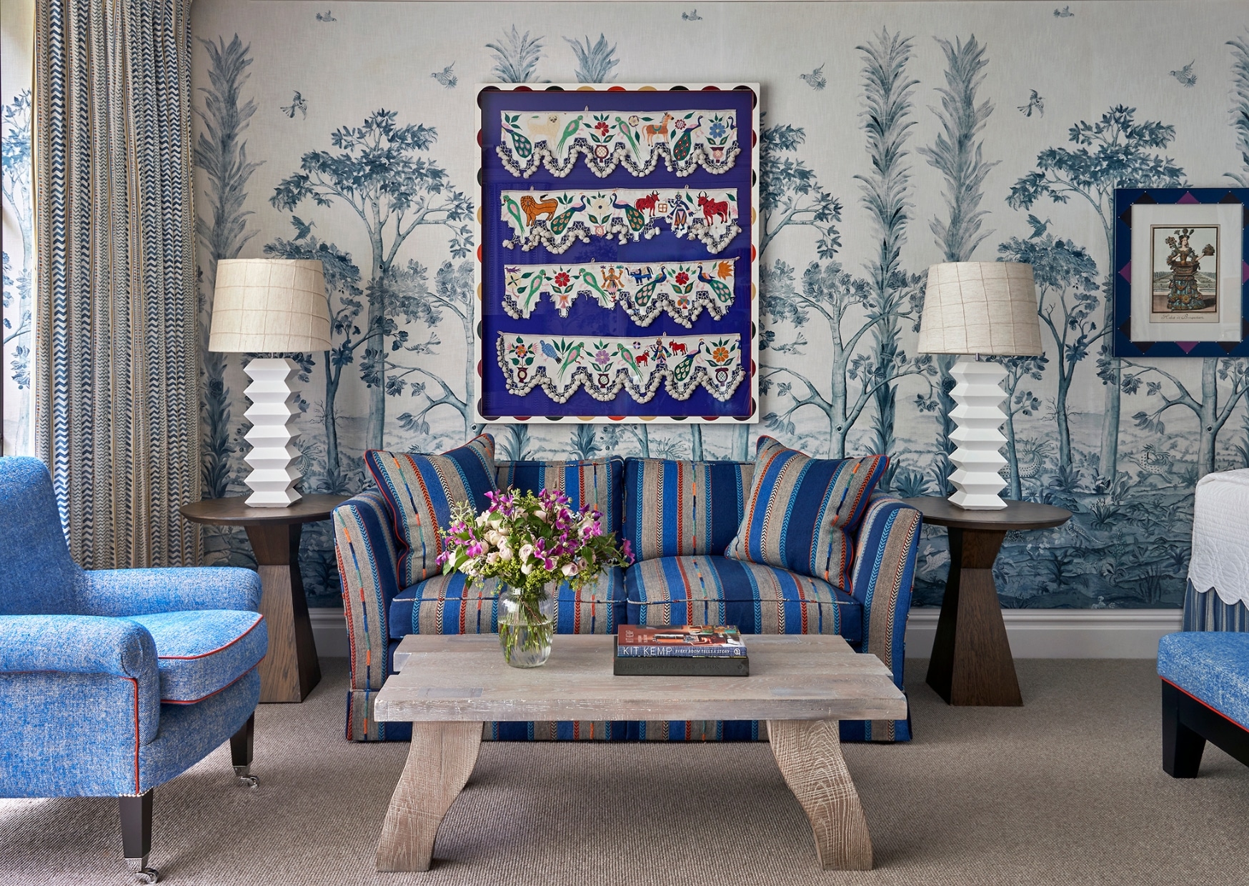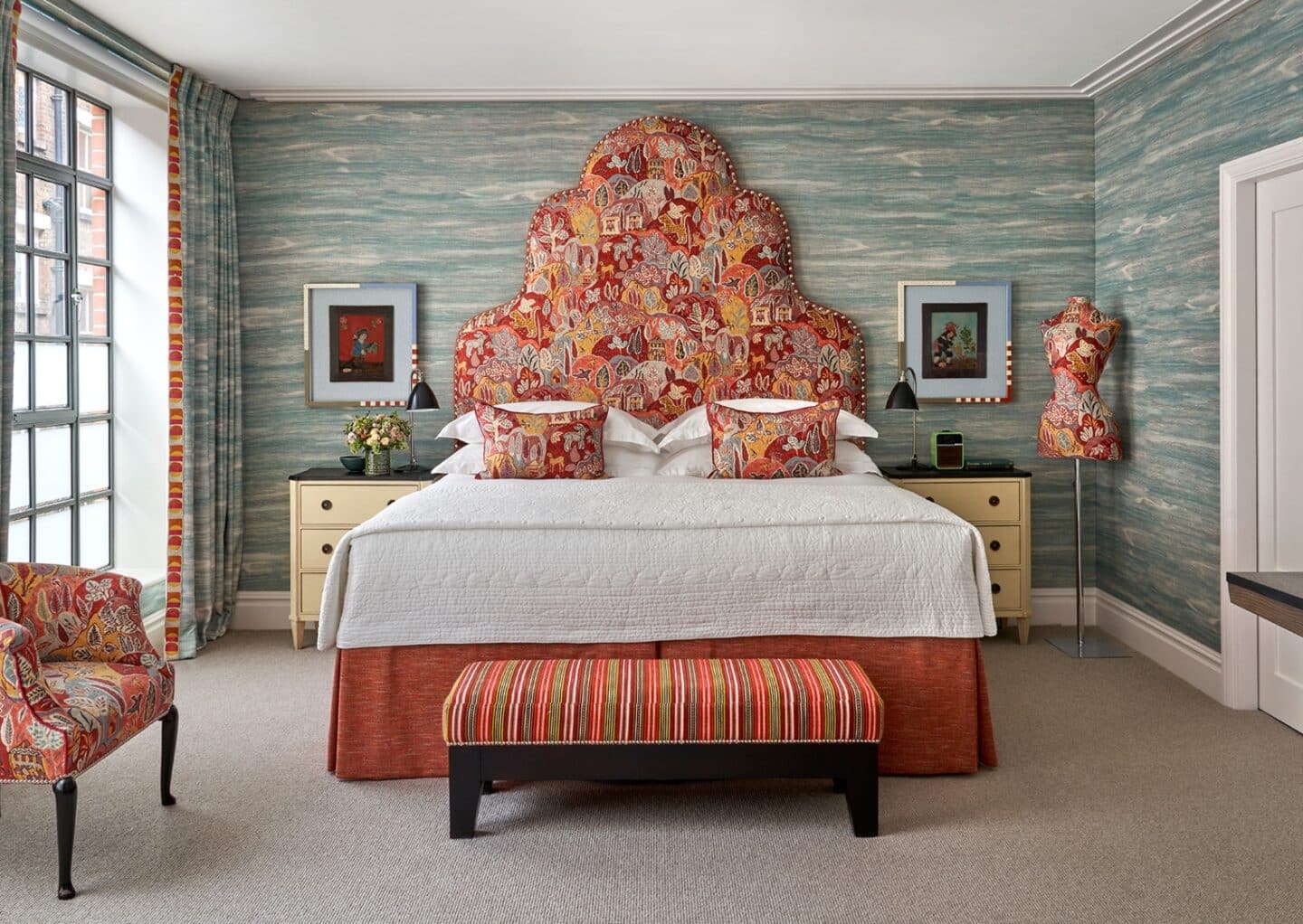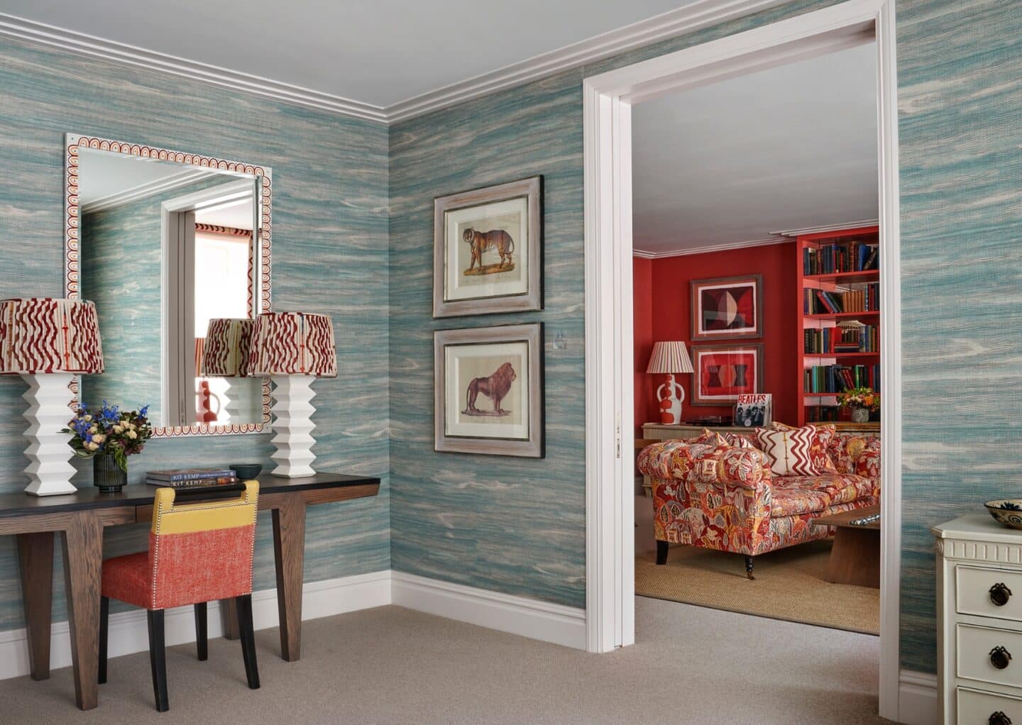Soft furnishings absorb sound, reduce echo and bring a sense of warmth that paint simply cannot achieve. We love incorporating fabric on walls as it creates an immediate feeling of comfort and arrival the moment you step into a room.