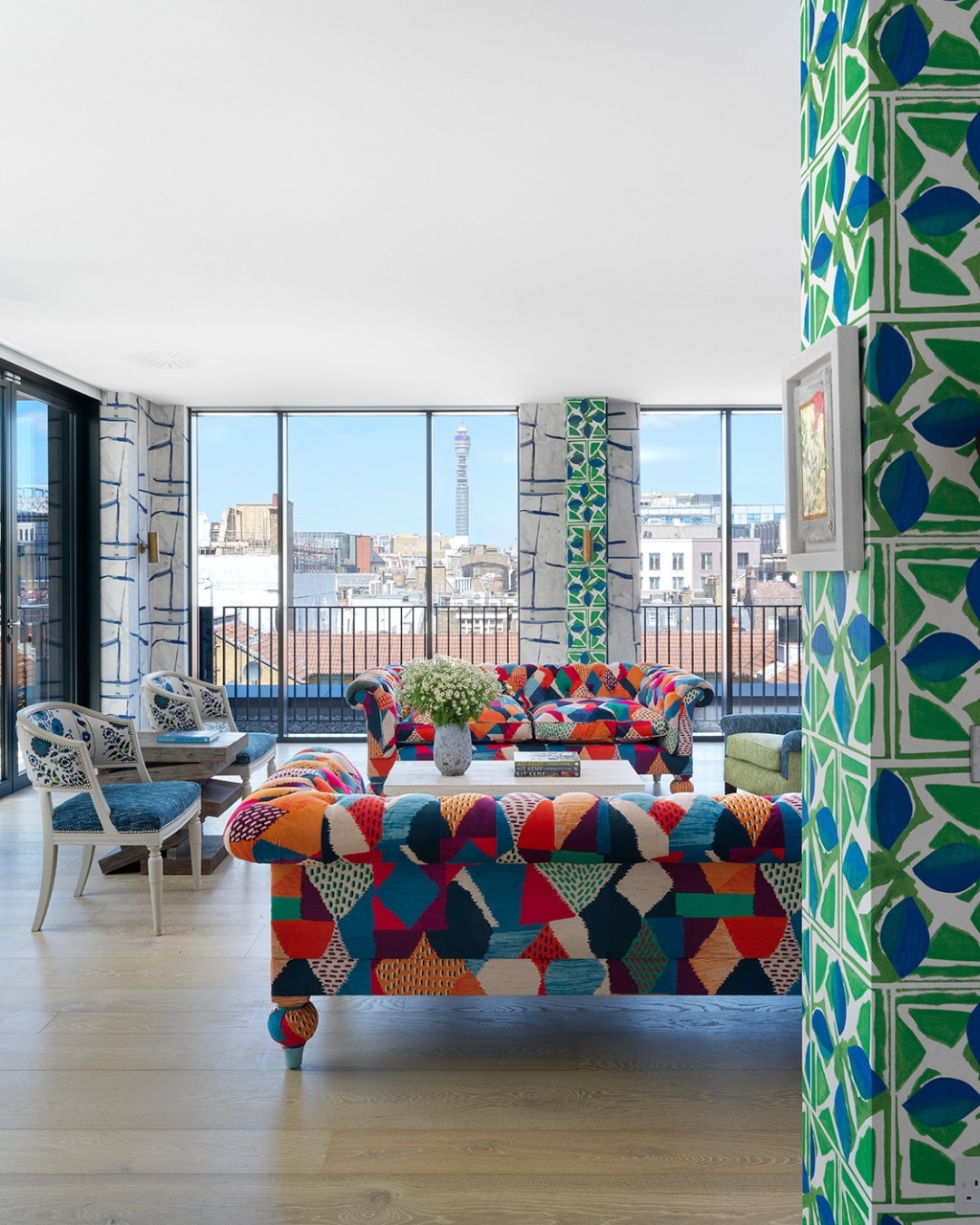 Columns are often large, prominent and awkwardly placed. Rather than concealing them, they can be transformed into a feature. Wrapping them in fabric, such as a bold graphic or tile-inspired pattern, adds character and turns an inconvenience into a statement.