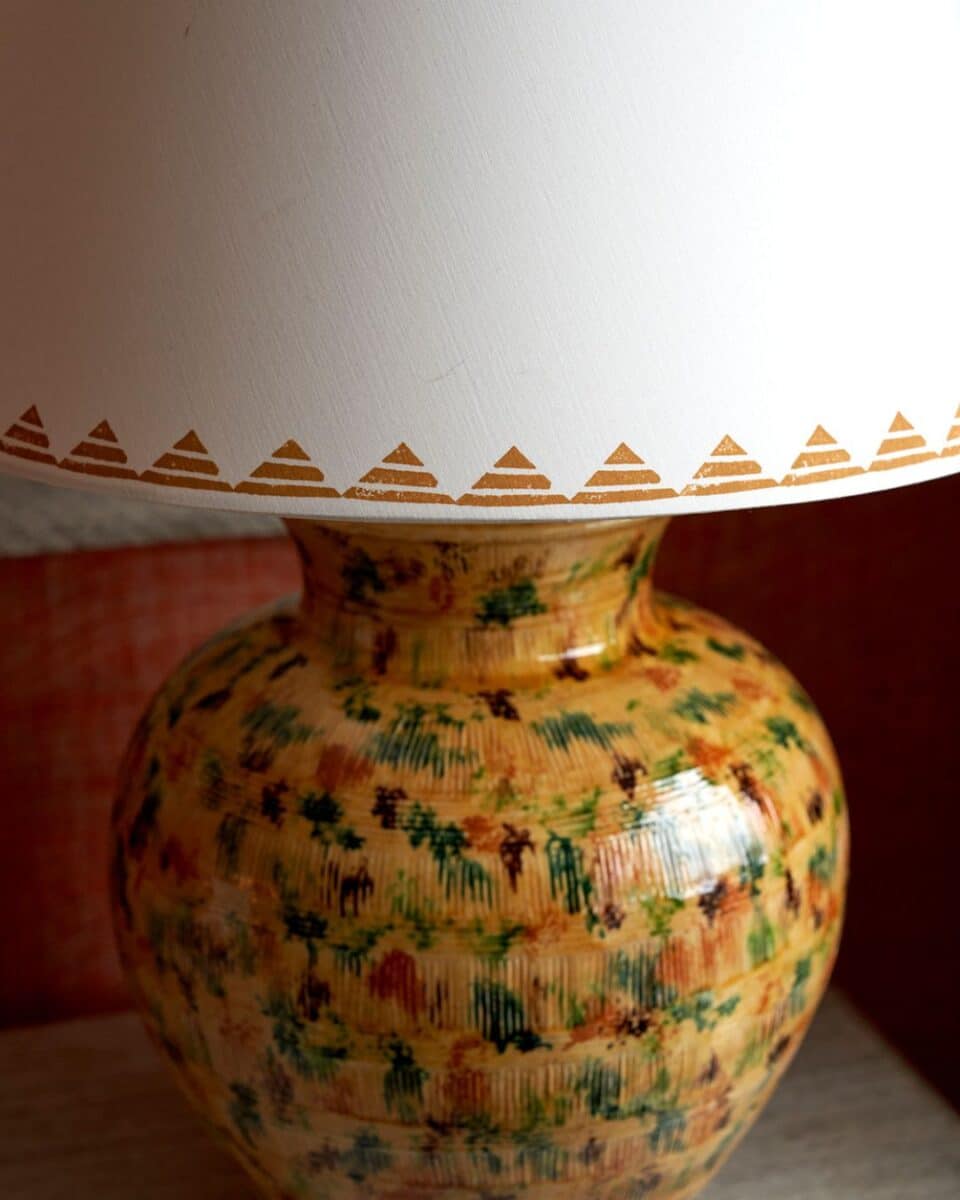 They’re everything. I love pairing bold, confident shapes with soft, natural textures. The palette tends to evolve intuitively — sometimes muted and earthy, sometimes more playful. Because the printing is done by hand, each layer of paint adds a subtle variation in tone and texture, giving every lampshade its own quiet energy.