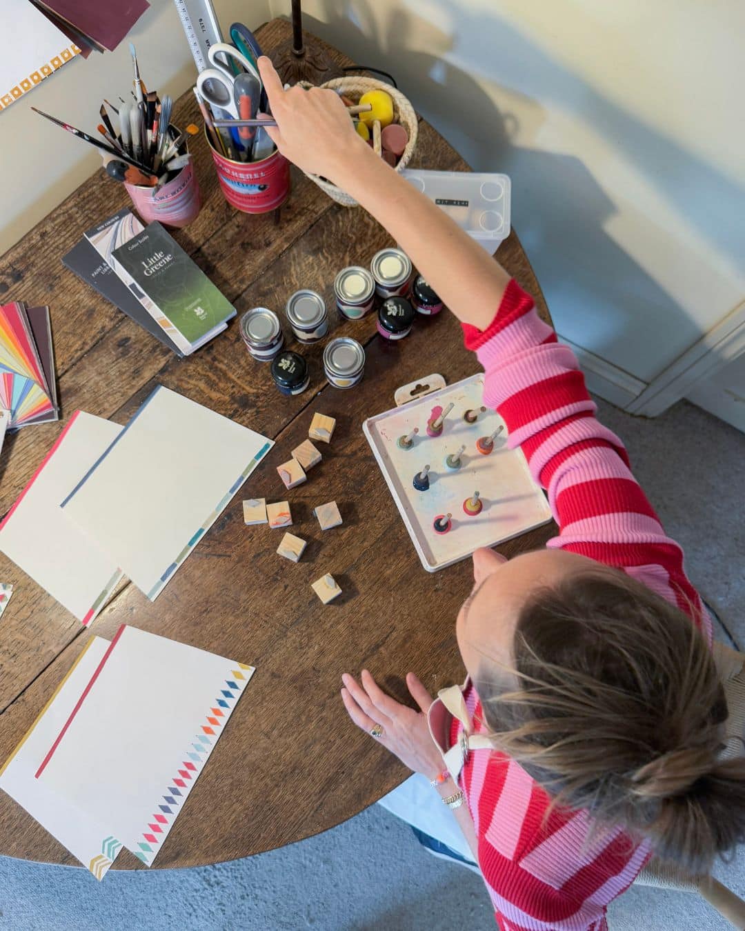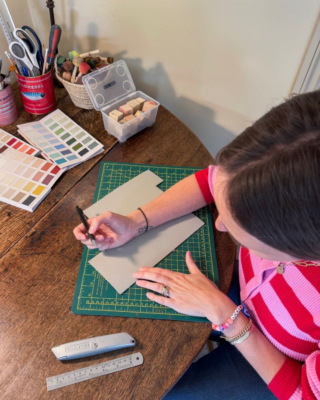 Apart from the obvious lino blocks, I’d say either my craft knife, or flat head screwdriver; turns out Farrow & Ball sample pots become increasingly tricky to open over time.
