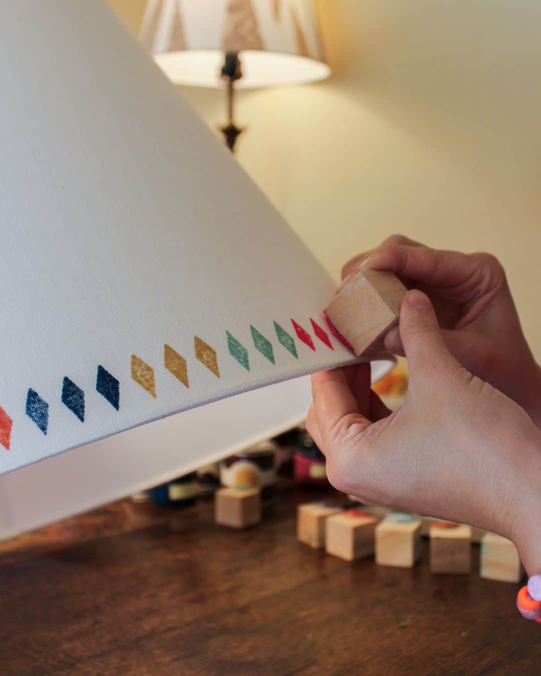 Each design begins with sketches and blockprinting tests. Once I’ve developed a pattern that feels balanced in rhythm and tone, I carve the design into a block and start printing onto cut out 2D paper lampshades. Once I am happy with the design, pattern and colours, I print directly onto the lampshade. I find it’s such a meditative process and my favourite part of running this small business. No two pieces are ever identical which I think makes them so special.
