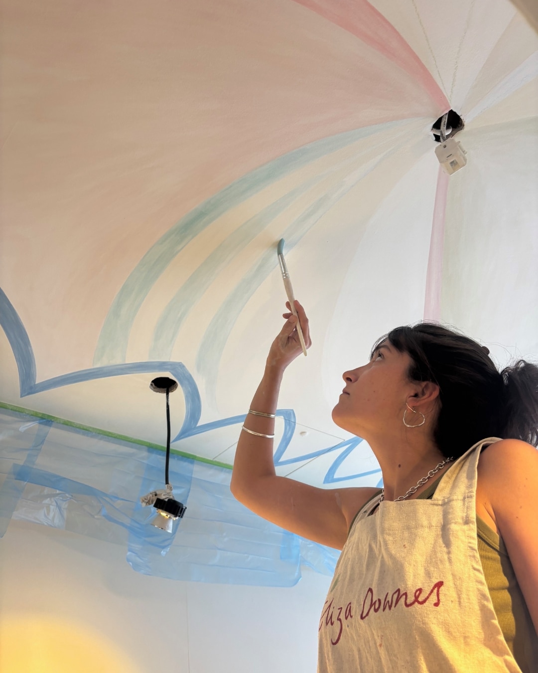 We recently worked with Eliza on a bespoke ceiling mural for the newly refurbished Dora Carrington Room at Charlotte Street Hotel. Inspired by the Bloomsbury Group and responding to the Pierre Frey walling fabric that lines the room, Eliza’s ceiling design introduces a richly layered artistic flourish, with a painted story unfolding overhead. This week on the blog, we chat to Eliza to find out more about her work and creative process.