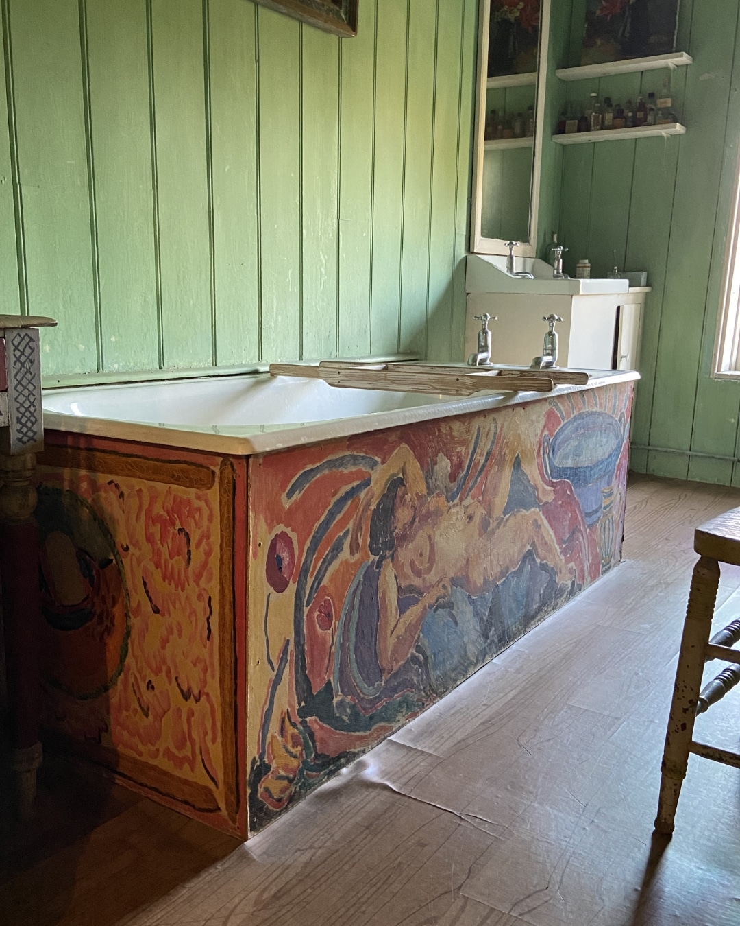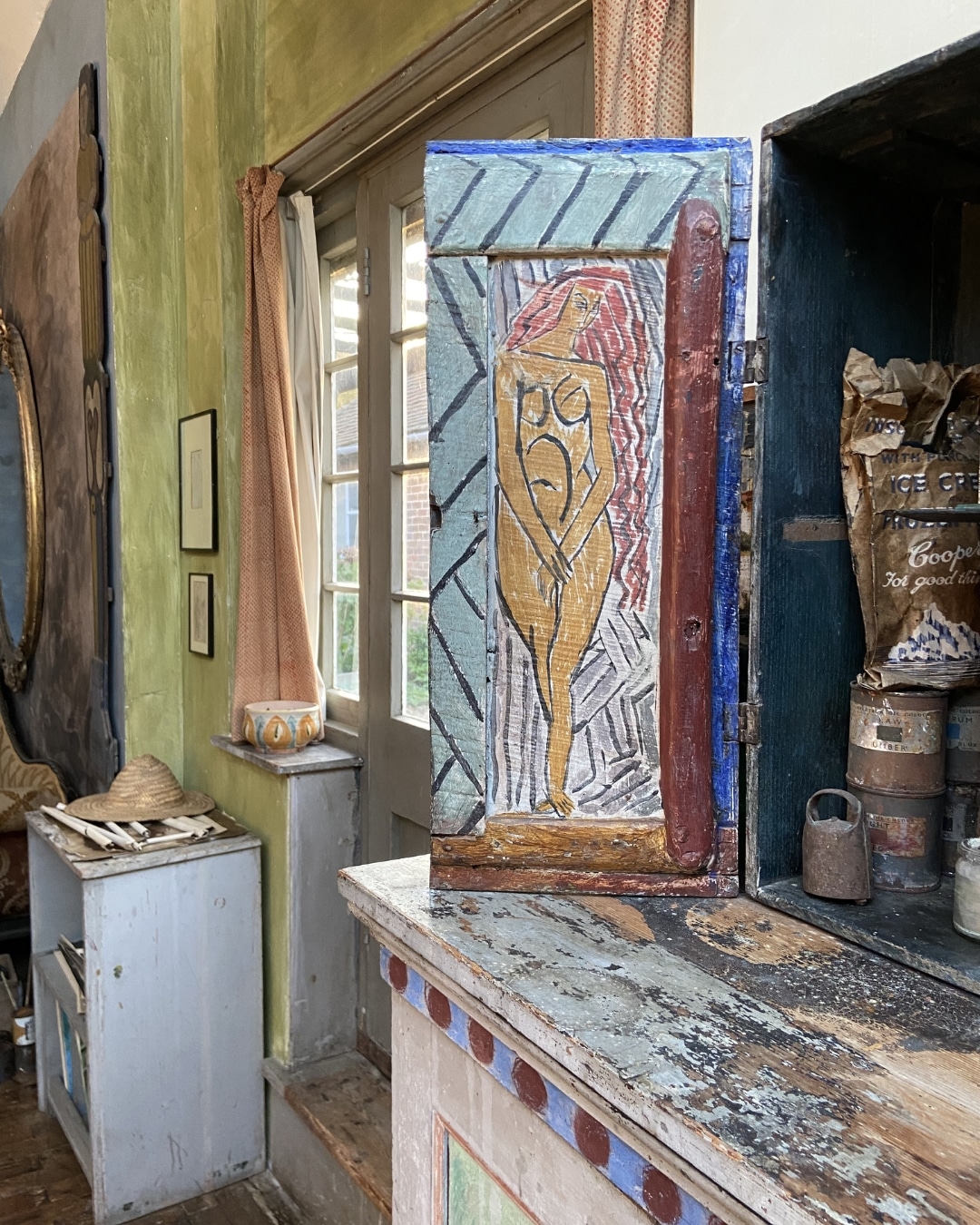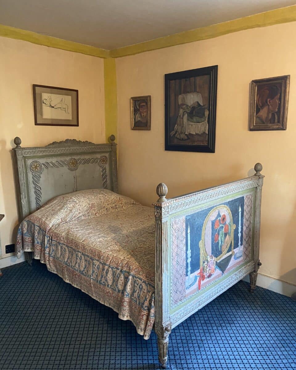 In Vanessa Bell’s bedroom, Duncan Grant painted a cockerel above the window to wake her in the morning and a shaggy dog to protect her while she slept. Thoughtful touches like these are what make an interior feel homely and personal.