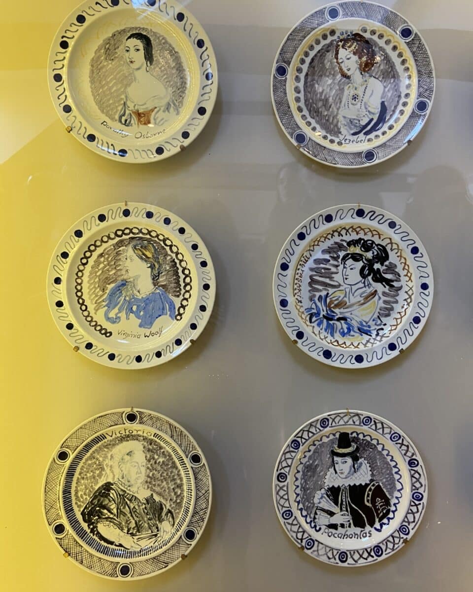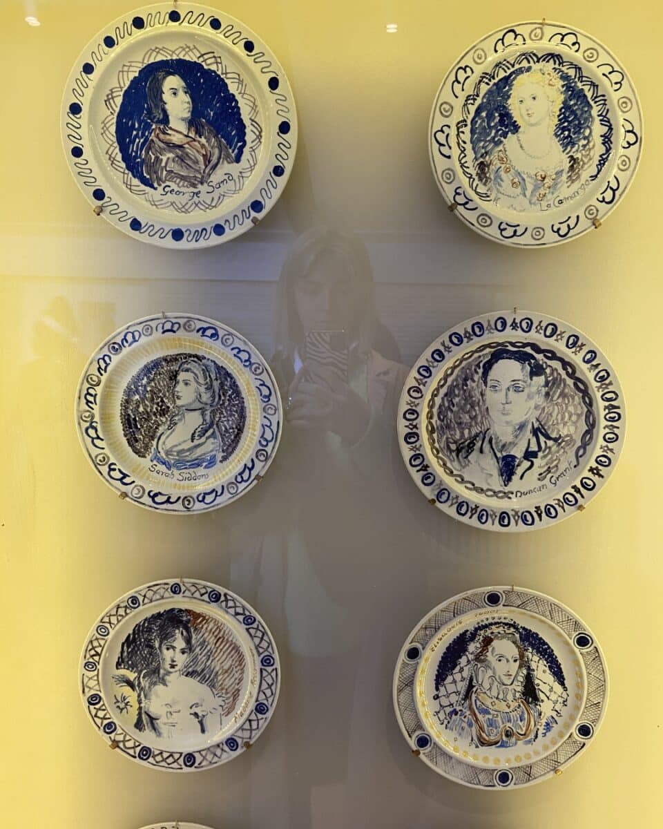 Upon entering the house, we were greeted by a large display of 50 plates that Vanessa Bell and Duncan Grant were commissioned to hand paint, portraits of 48 women and two men. There is so much detail in the dinnerware. Each one is completely individual, with intricate patterns woven throughout.