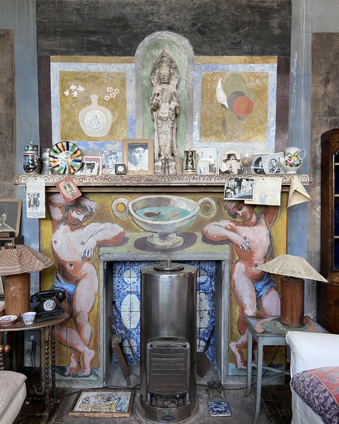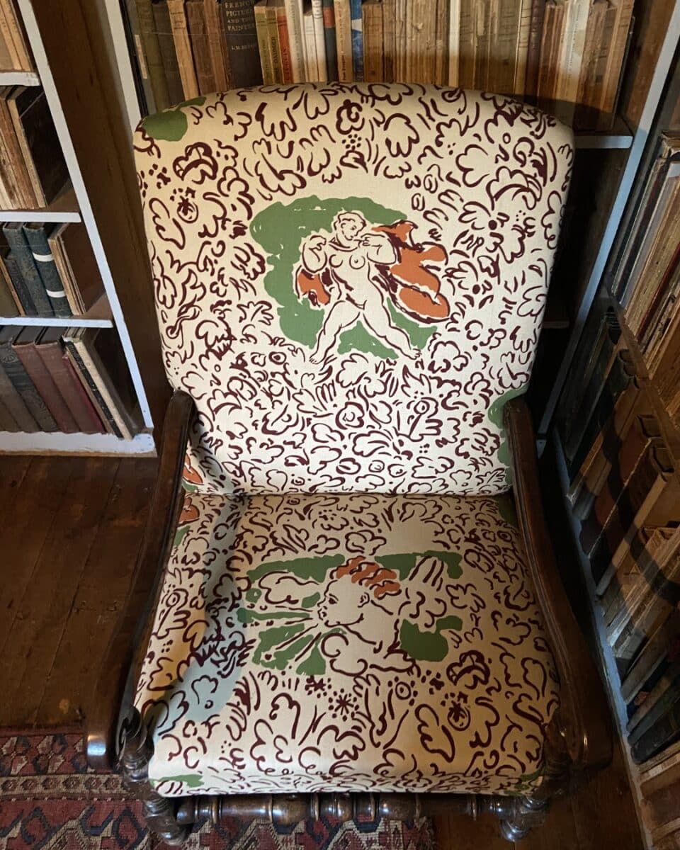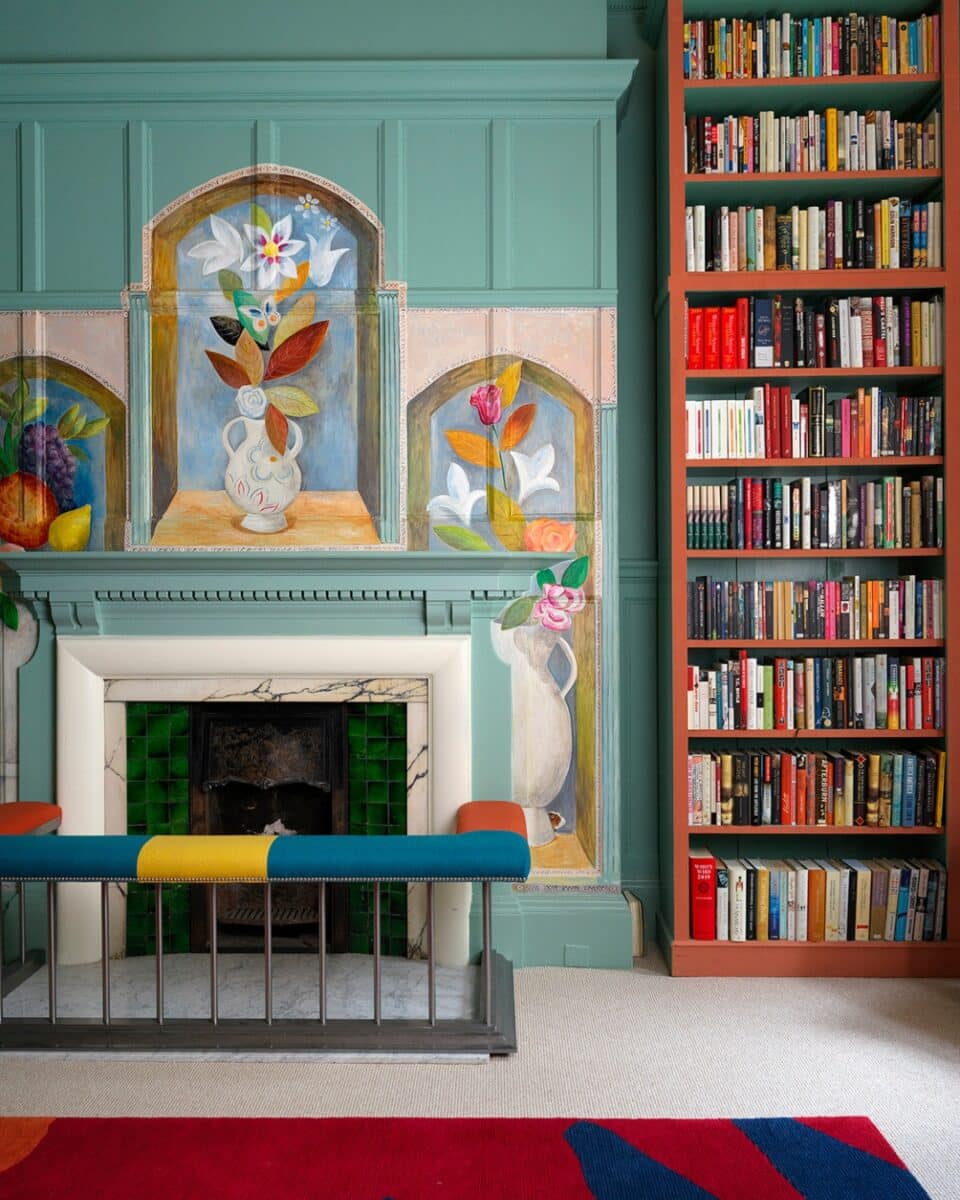 The Bloomsbury Group has deeply inspired us in our own decoration. For the refurbishment of the Bloomsbury Publishing offices, we commissioned Tess Newall to paint the fireplace in the same spirit as the artwork created by the group.