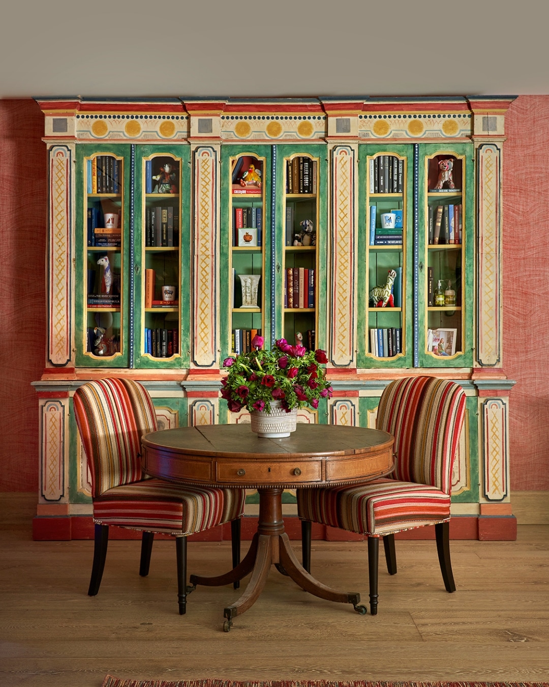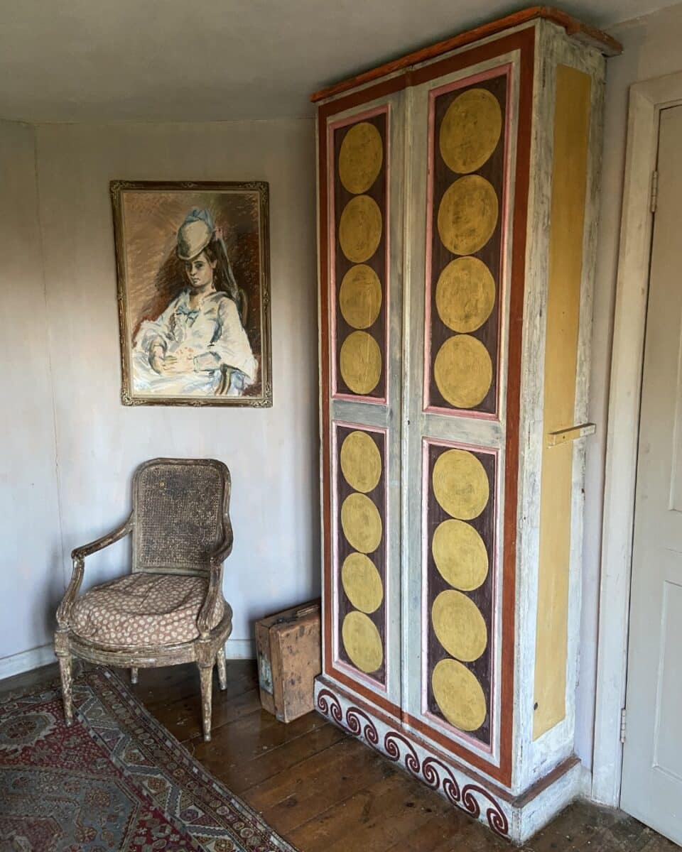 As you move through the rooms, it becomes clear that very few surfaces were left untouched and everything was considered. Walls, furniture, fireplaces and even doors are painted with a kind of effortless confidence. However, the corridors leading to each room were always left plain, adding to the sense of anticipation upon entering. There is a looseness to the decoration that feels refreshing, a sense that it does not need to be perfect, just expressive.