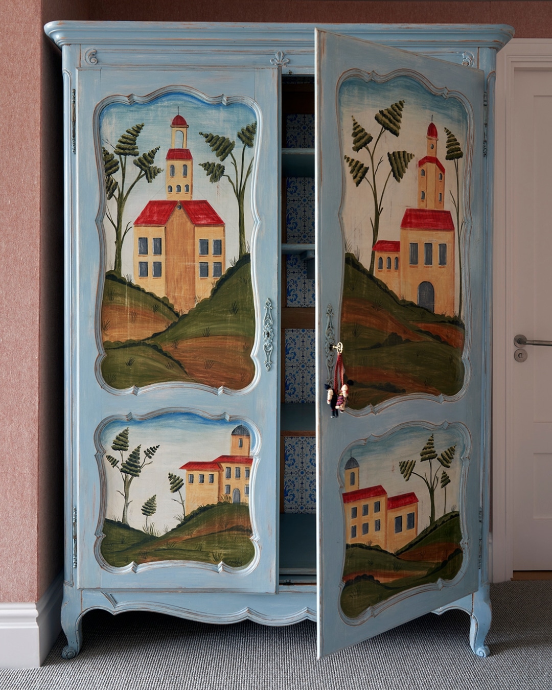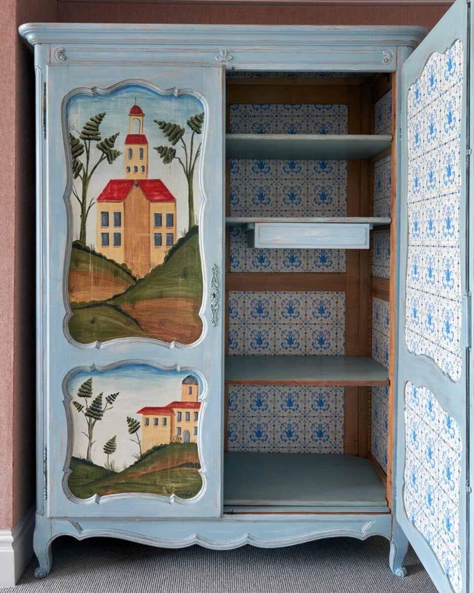 The antique wardrobe is more than a piece of furniture, it is a jewel within the room. It transforms a hotel stay into something that feels like home, inviting you to linger a little longer and imagine the stories painted across its doors.