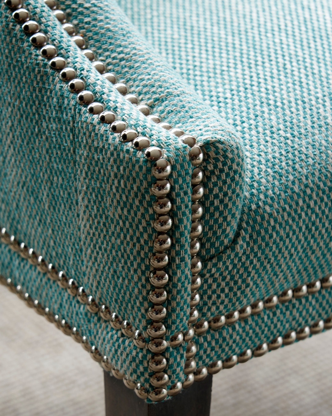 The sofa and Handle Chair, wonderfully versatile pieces, are upholstered in Busy Lizzie, a contemporary small-scale fabric that adds interest without overwhelming the scheme. From a distance, it reads almost as a plain, yet up close it reveals a lively energy that enriches the space.